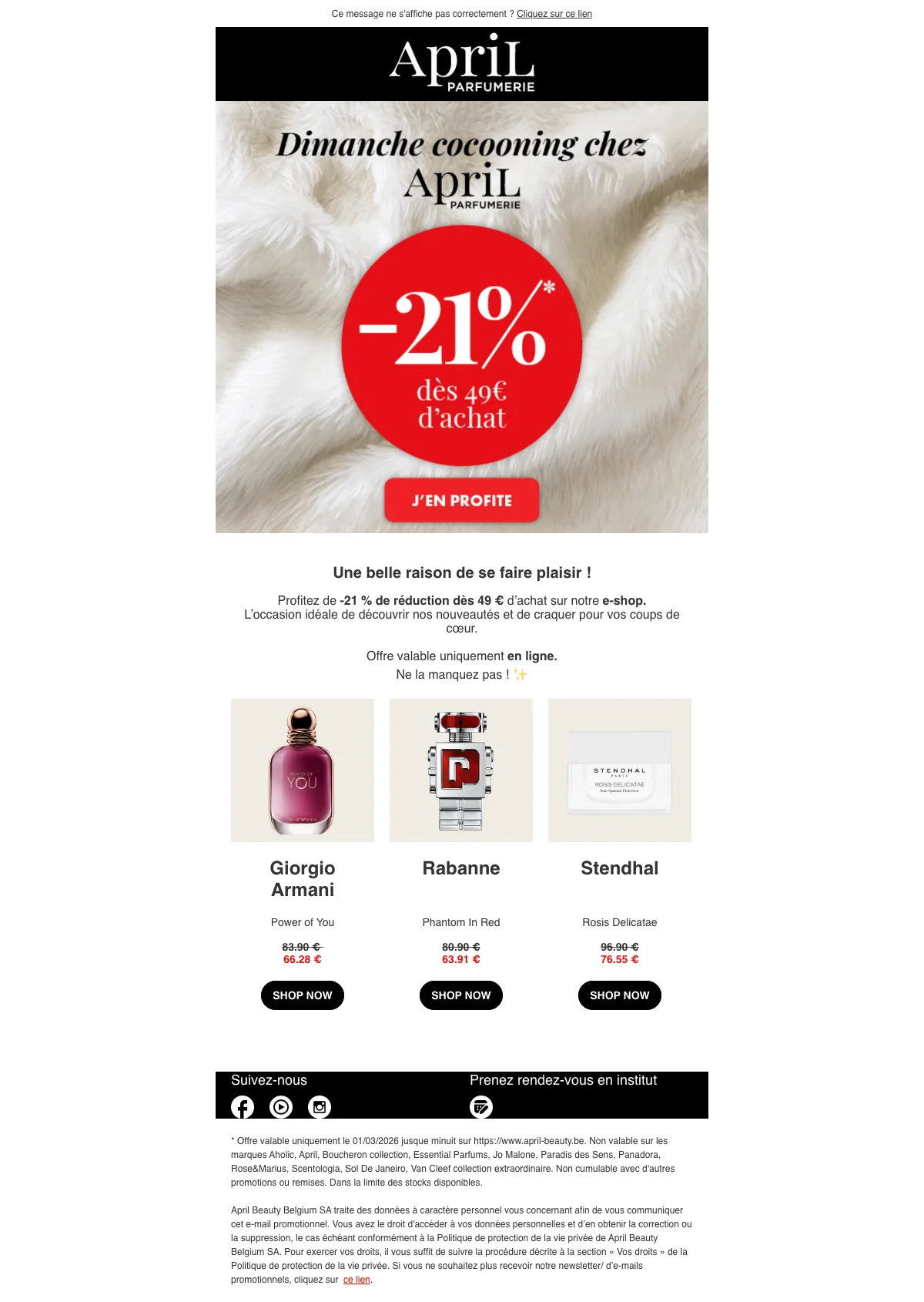 April Beauty avonddeal 21% korting vanaf €49 op e-shop