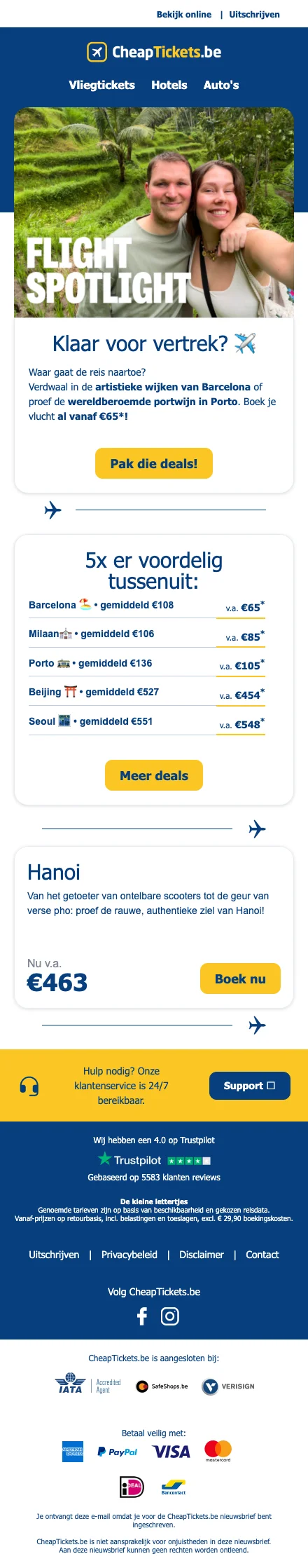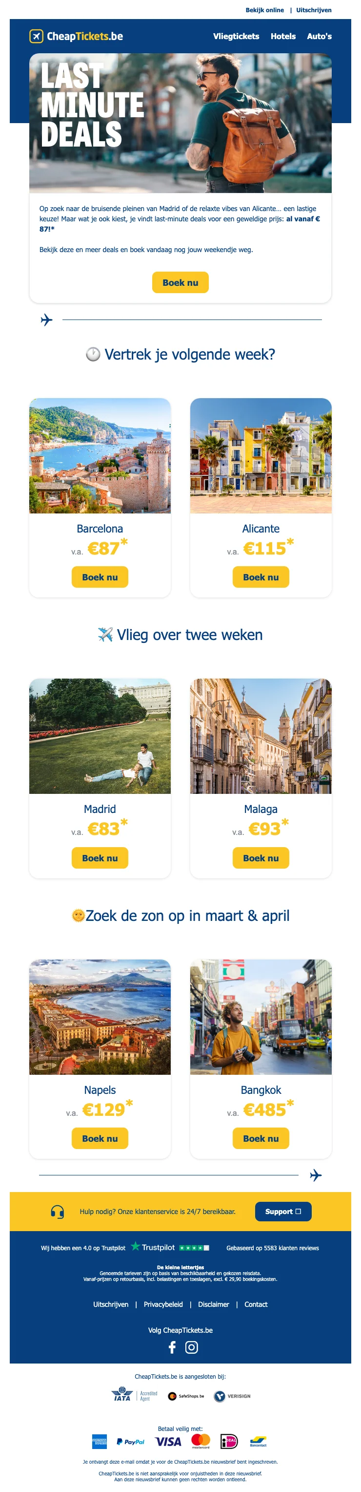 Daarnaast zetten ze altijd de beste promoties van dit moment op de homepage. Denk bijvoorbeeld aan vroegboek deals, zowel voor Europa als voor de rest van de wereld. Ook last minutes en rustige tripjes tijdens het najaar horen hier bij. Als een bepaalde luchtvaartmaatschappij een sale heeft, zetten ze dit meestal ook op de homepage. Solden mogelijk genoeg!