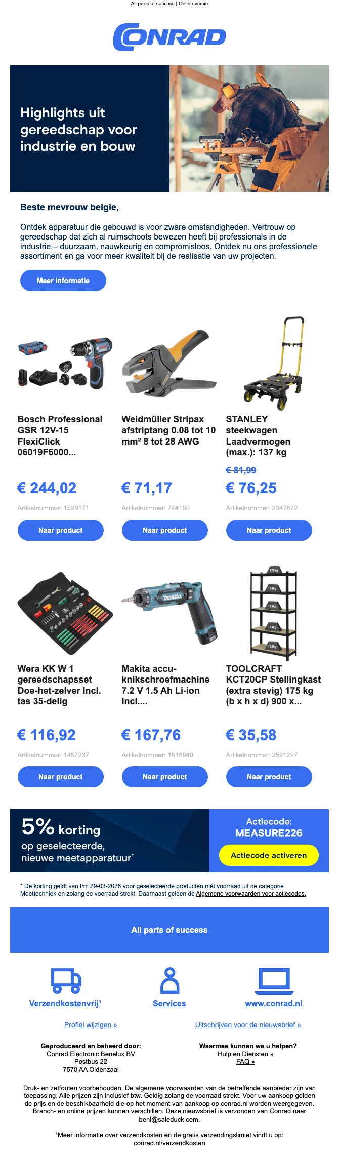Profiteer van 5% korting op geselecteerde, nieuwe meetapparatuur. Breng je technische projecten naar het volgende niveau met hoogwaardige meetinstrumenten tegen een gereduceerde prijs.