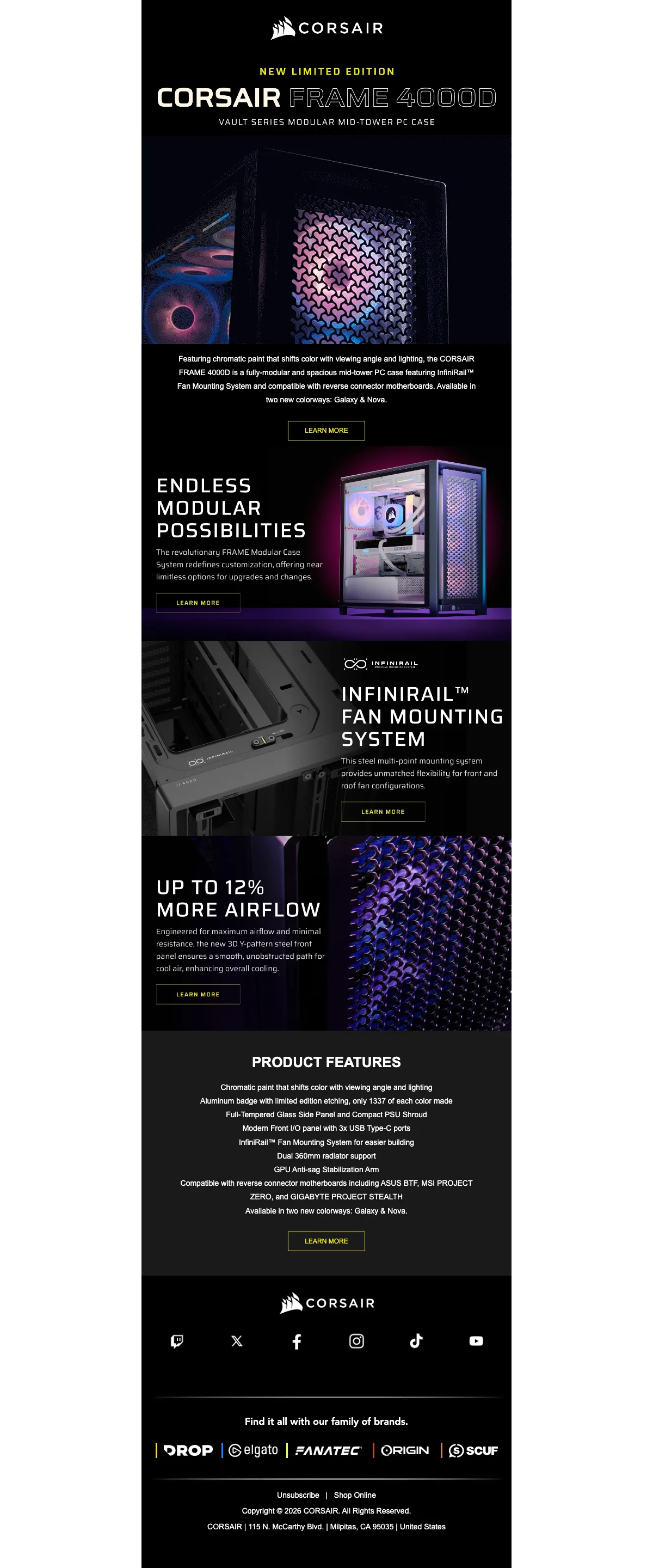Corsair computerbehuizing 15% korting bij besteding vanaf $500