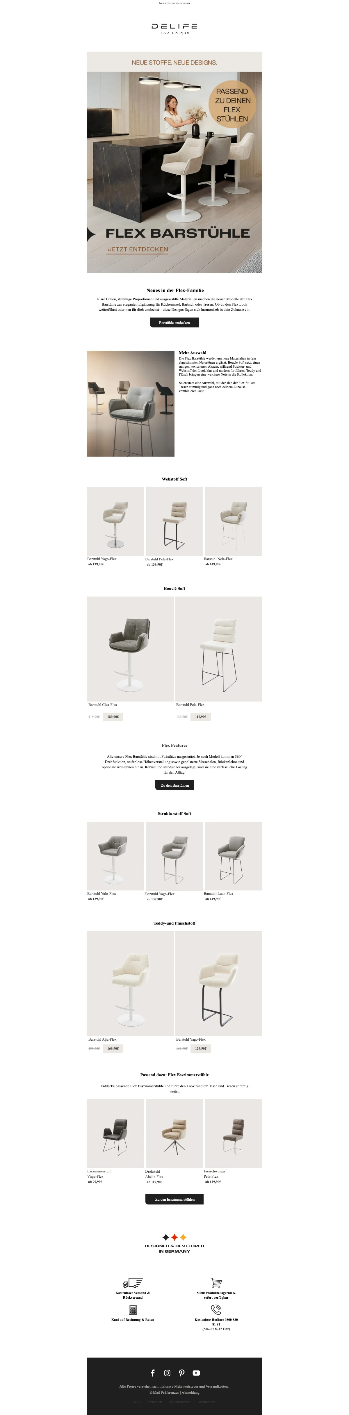 Delife Flex barkrukken vanaf €50 nieuwe stoffen en designs