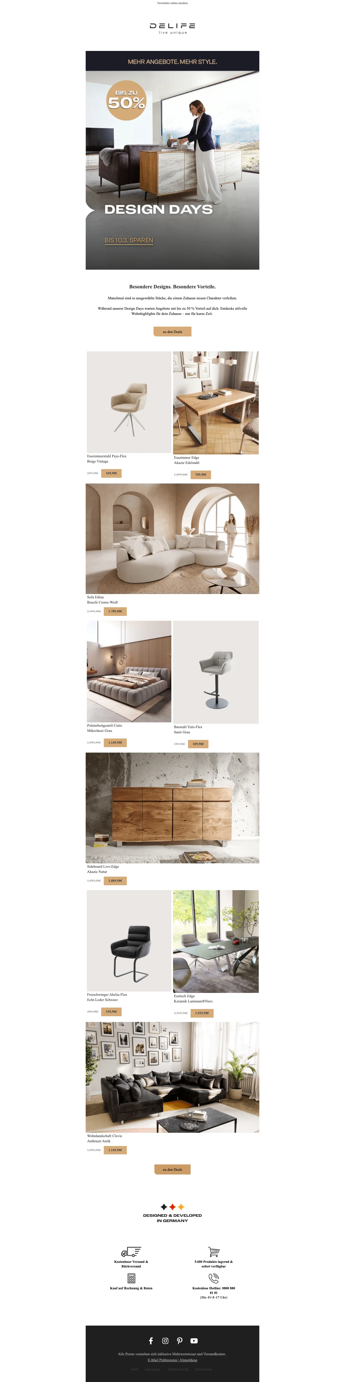 Delife design days tot 50% korting op trendy meubelen