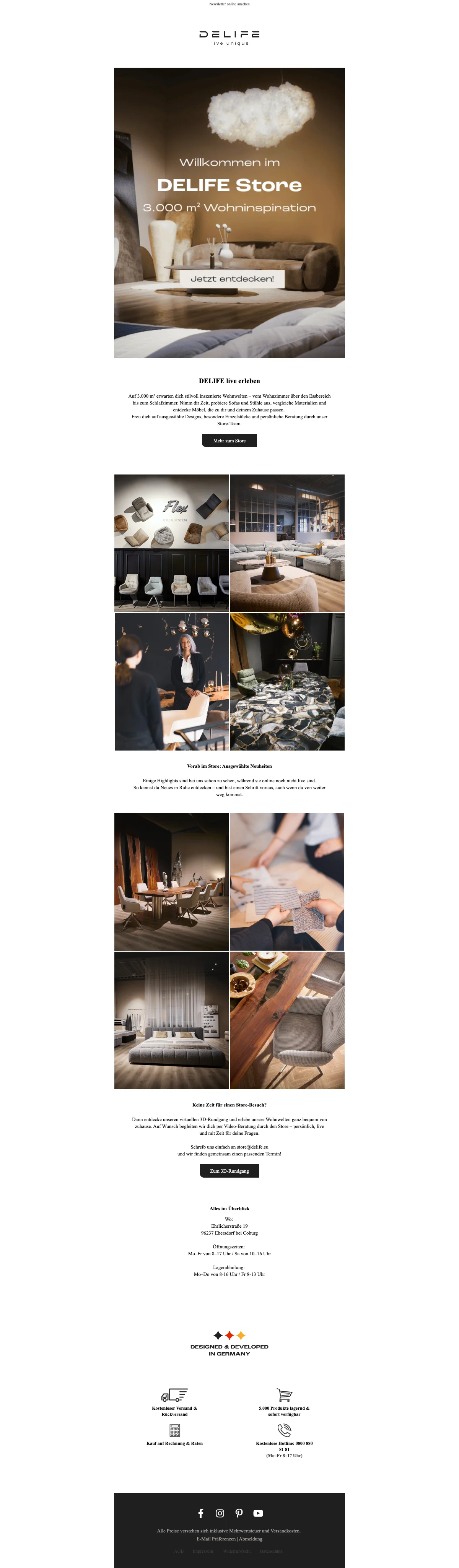 1. Bij Delife kunt u terecht voor alle meubels en decoratieve producten. Gaat u verhuizen of wilt u uw huis een andere look geven dan zijn de meubels de eerste factor. Deze winkel verkoopt online de mooiste en kwalitatieve producten. U kunt de producten ook komen bekijken in een van de showrooms zodat u er zelf een keer op kan zitten of een keer kan voelen.