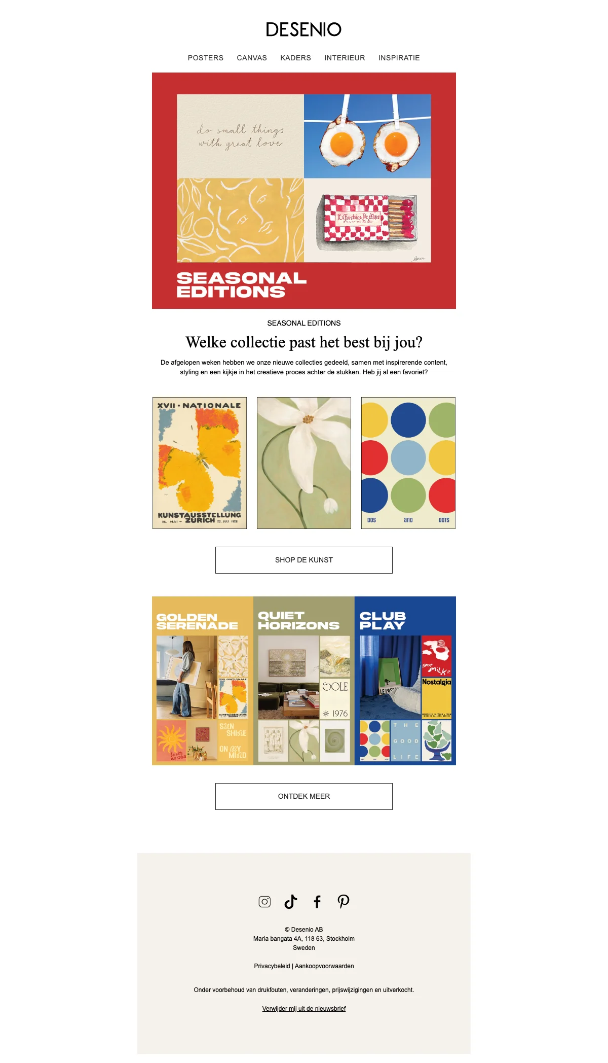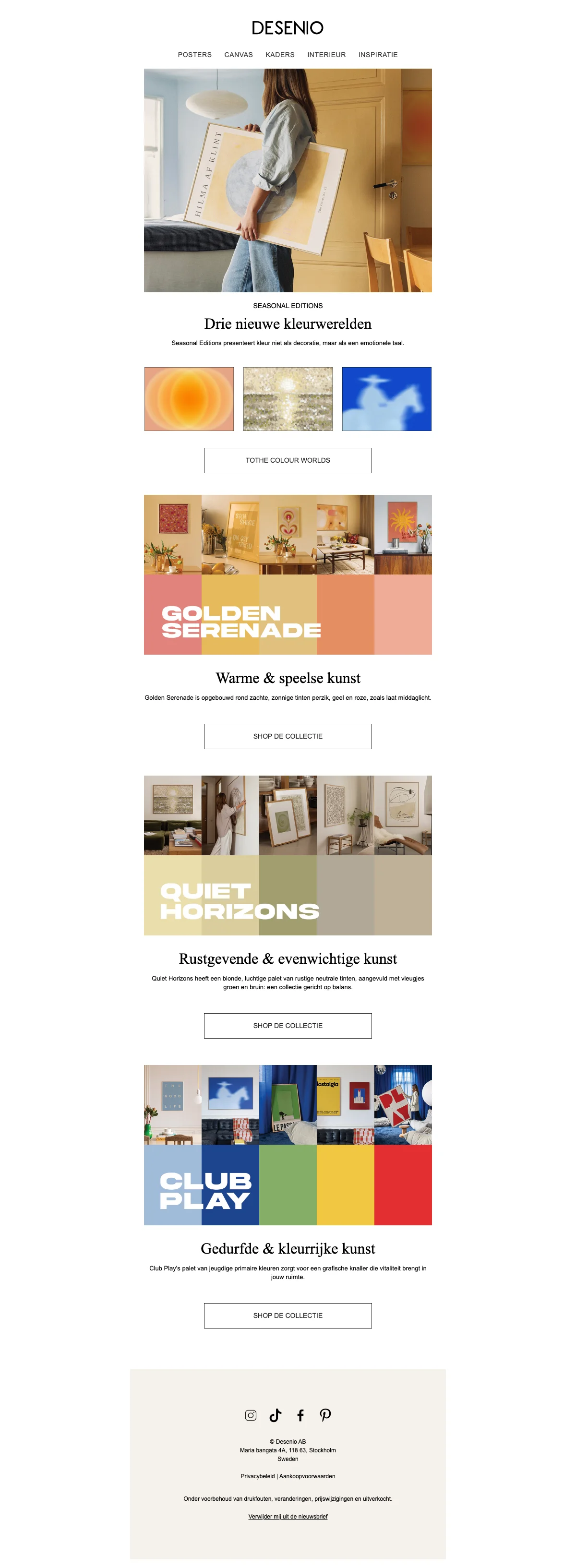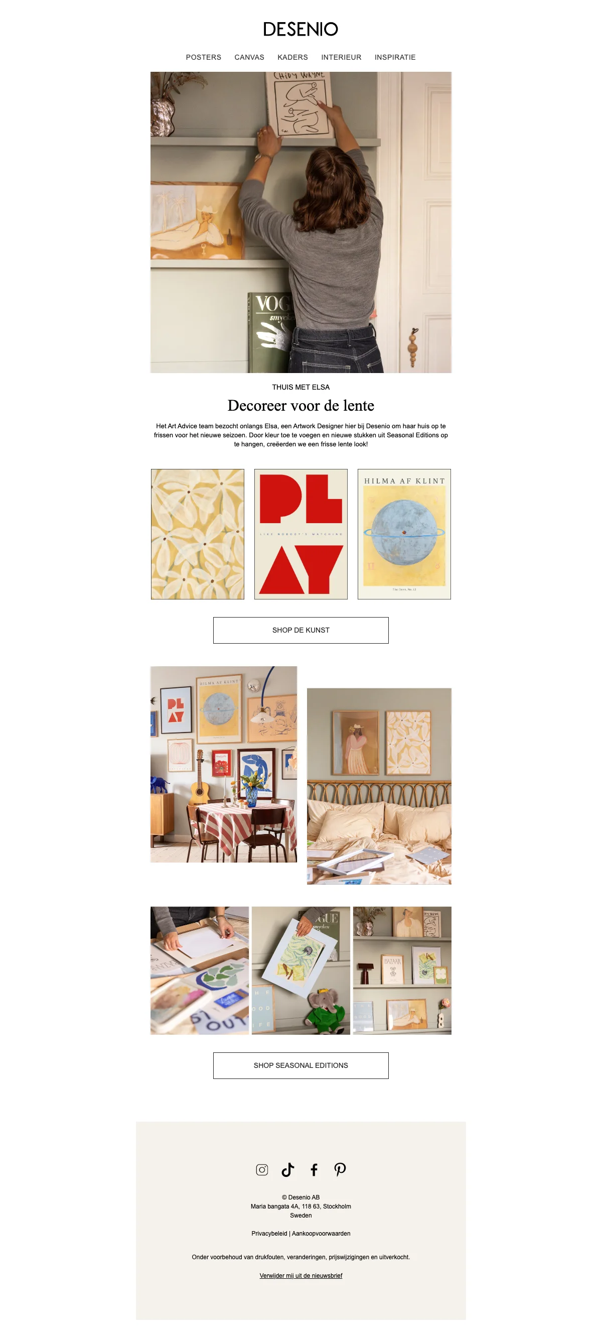 Bij Desenio vind je een uitgebreide collectie aan posters voor elk interieur. Van abstracte kunst tot inspirerende quotes, er is voor ieder wat wils. Kies uit verschillende formaten en stijlen en geef je muren een persoonlijke touch met de prachtige posters van Desenio.