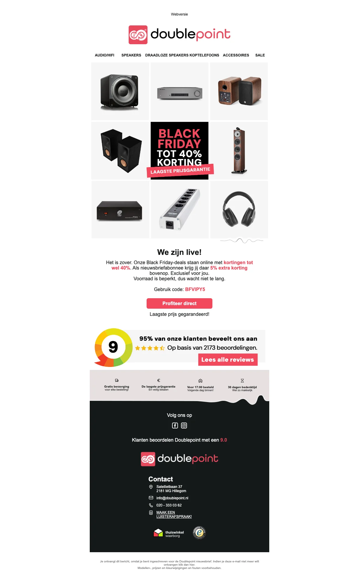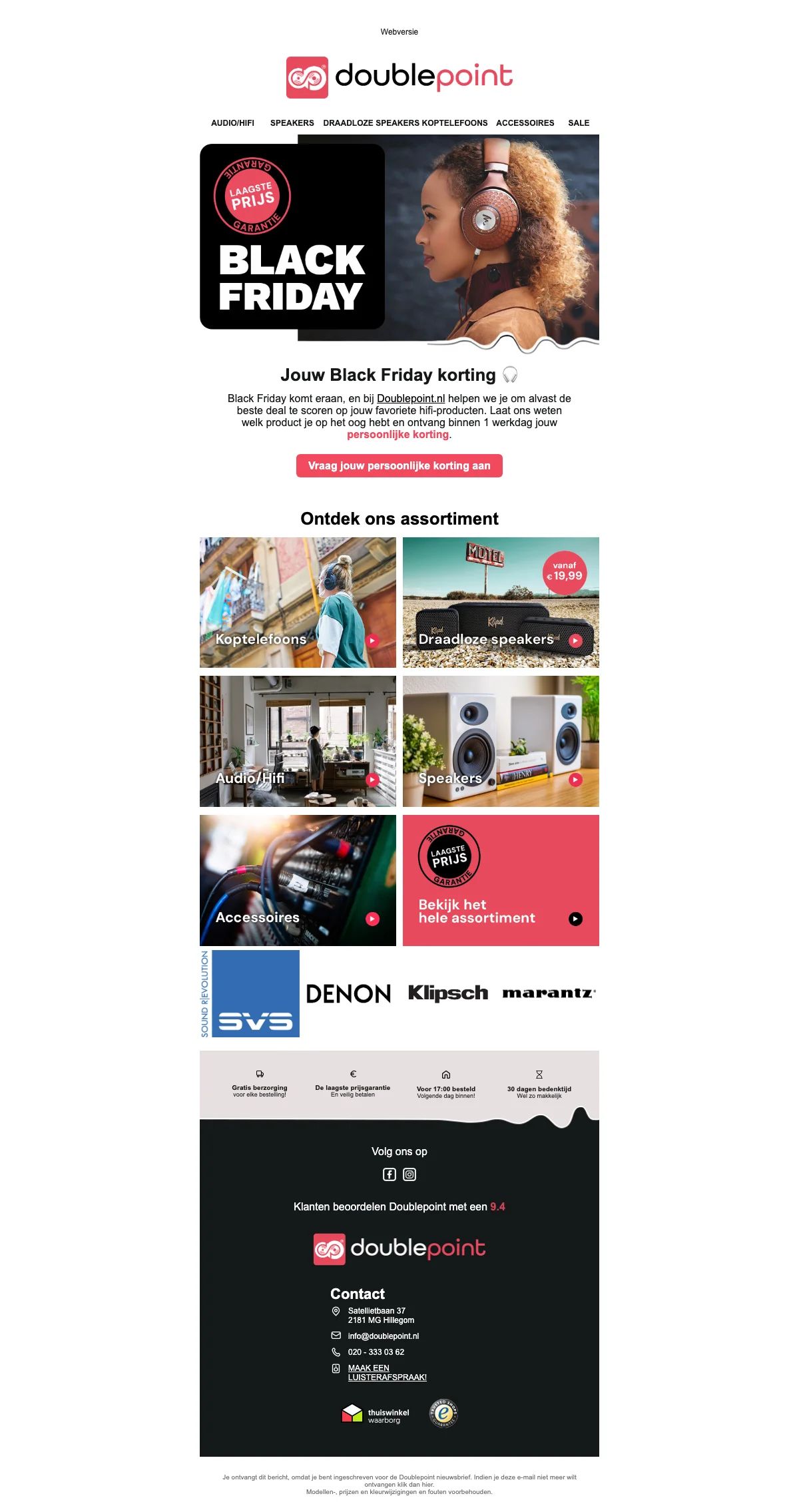 Je krijgt directe korting op geselecteerde hifi- en audioapparatuur; geldig voor speakers, versterkers en accessoires. Bespaar op premium audio-apparatuur, maar houd rekening dat sommige merken uitgesloten zijn.