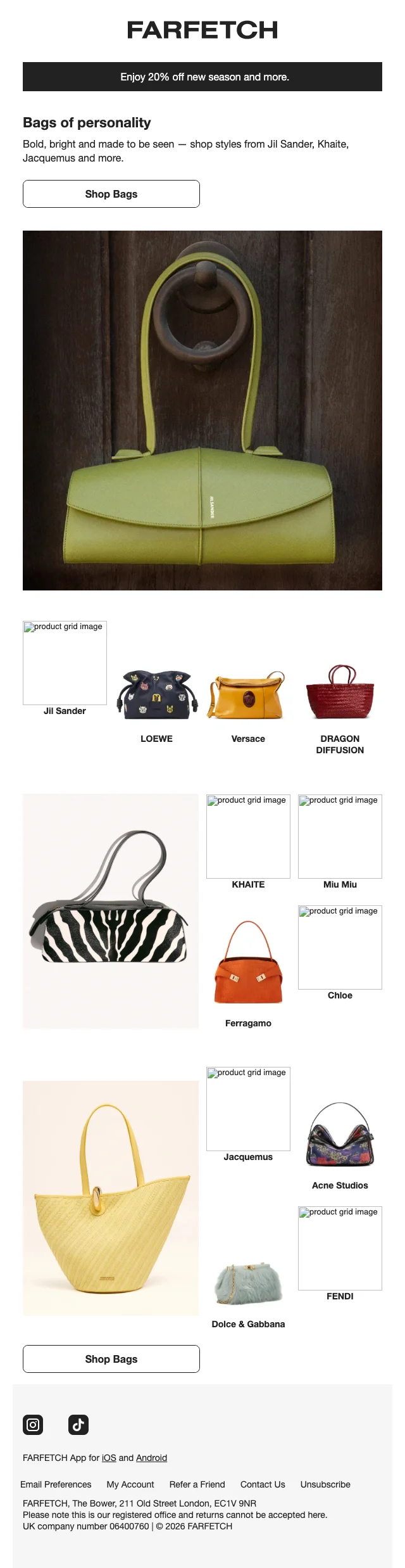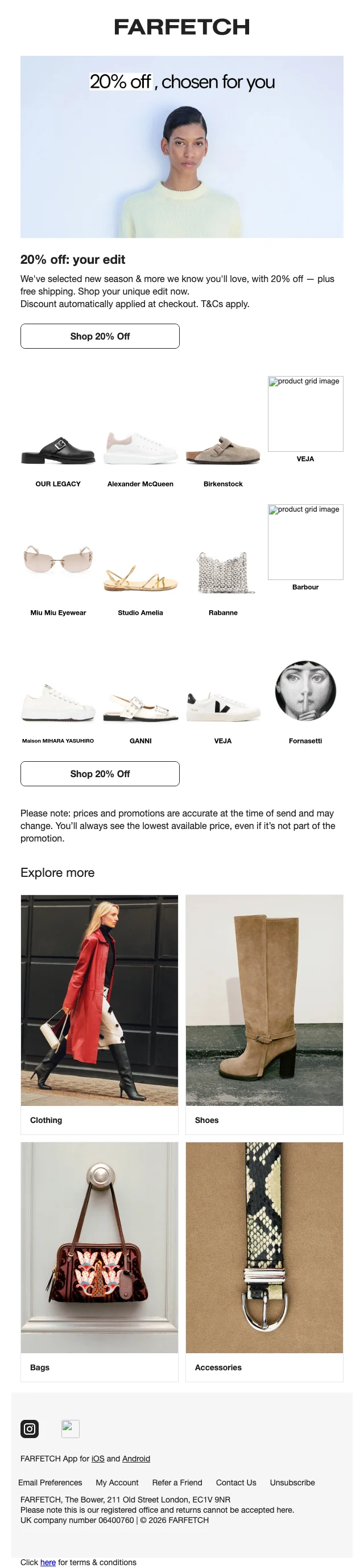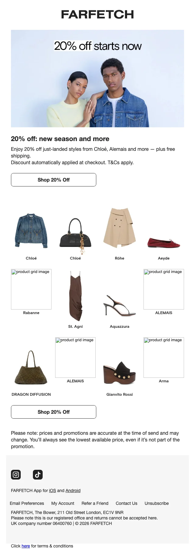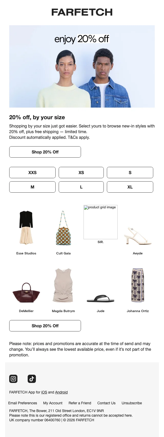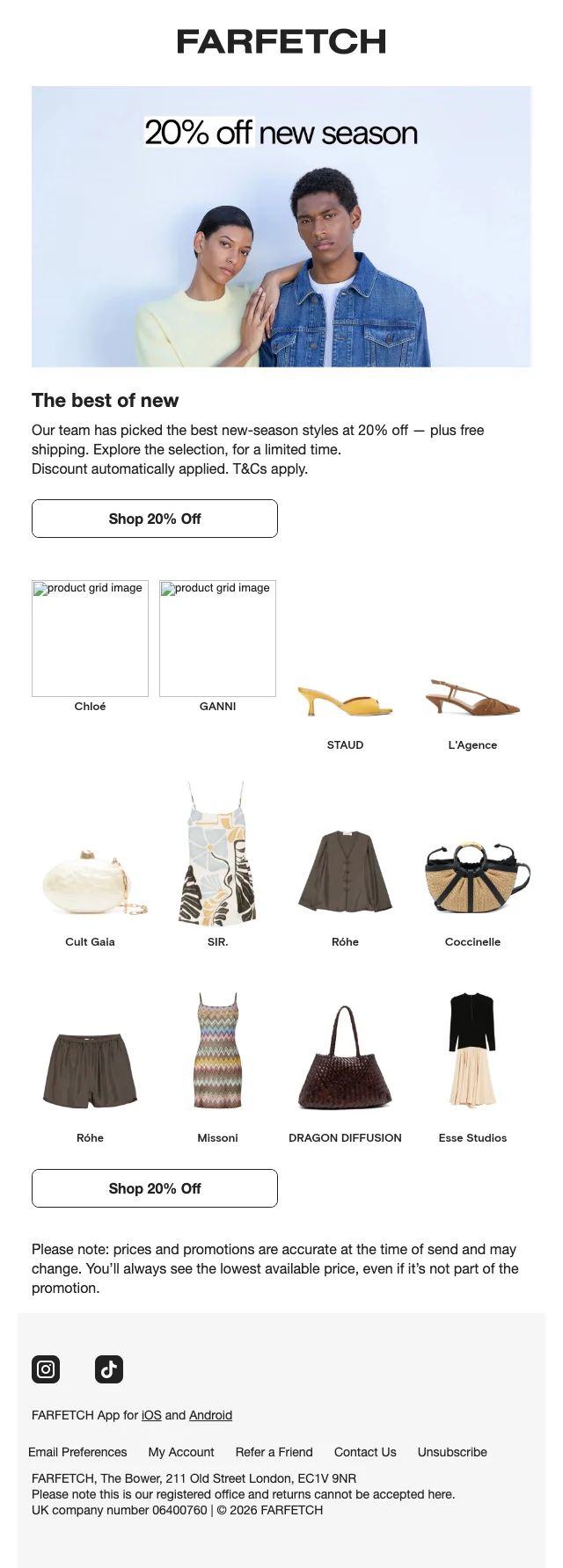 Farfetch aanbieding nieuwe collectie 20% korting en gratis verzending