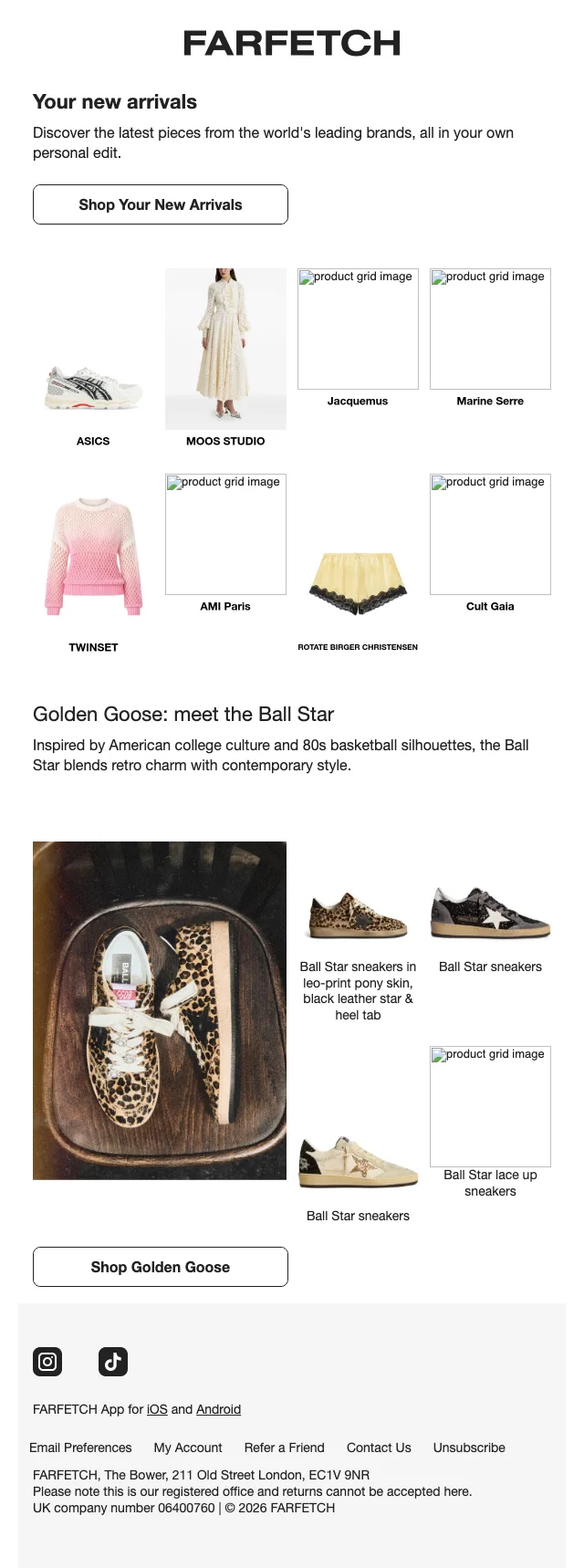 Gratis inschrijving op de nieuwsbrief van Farfetch
