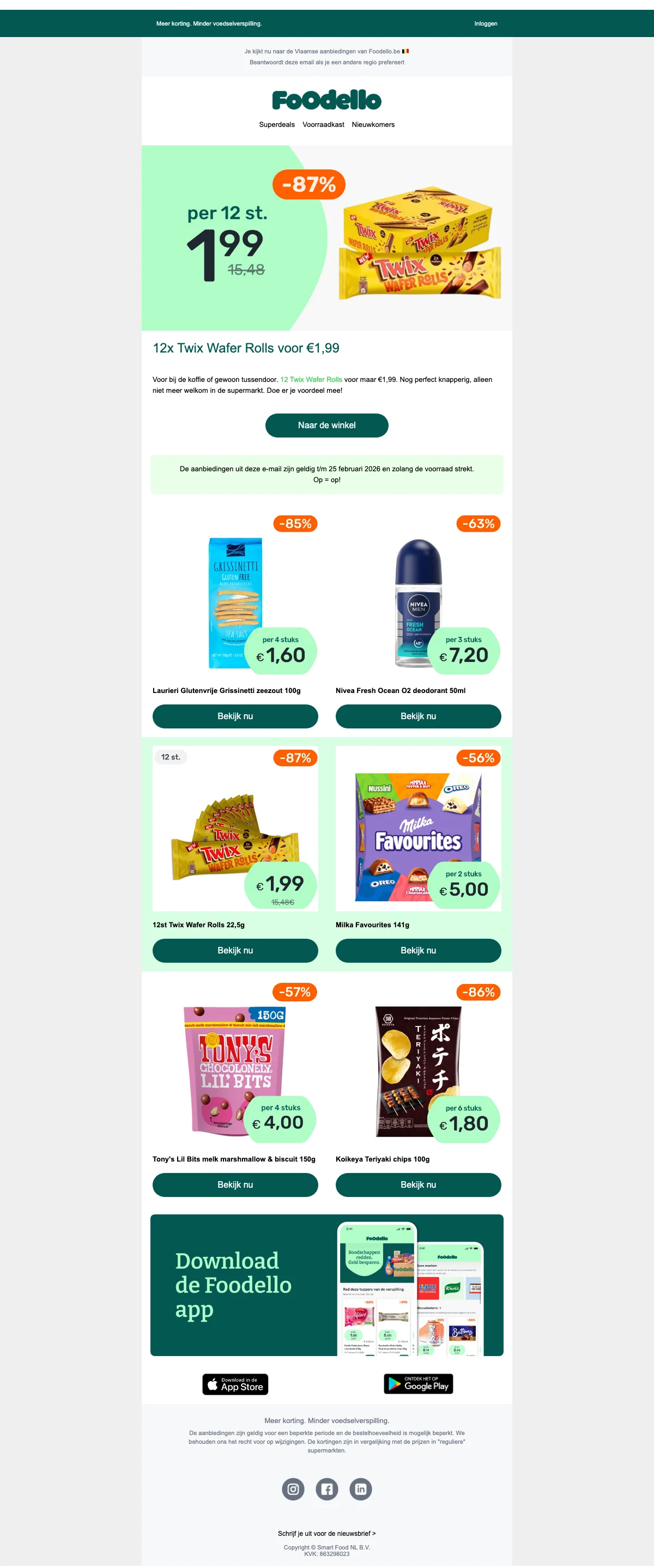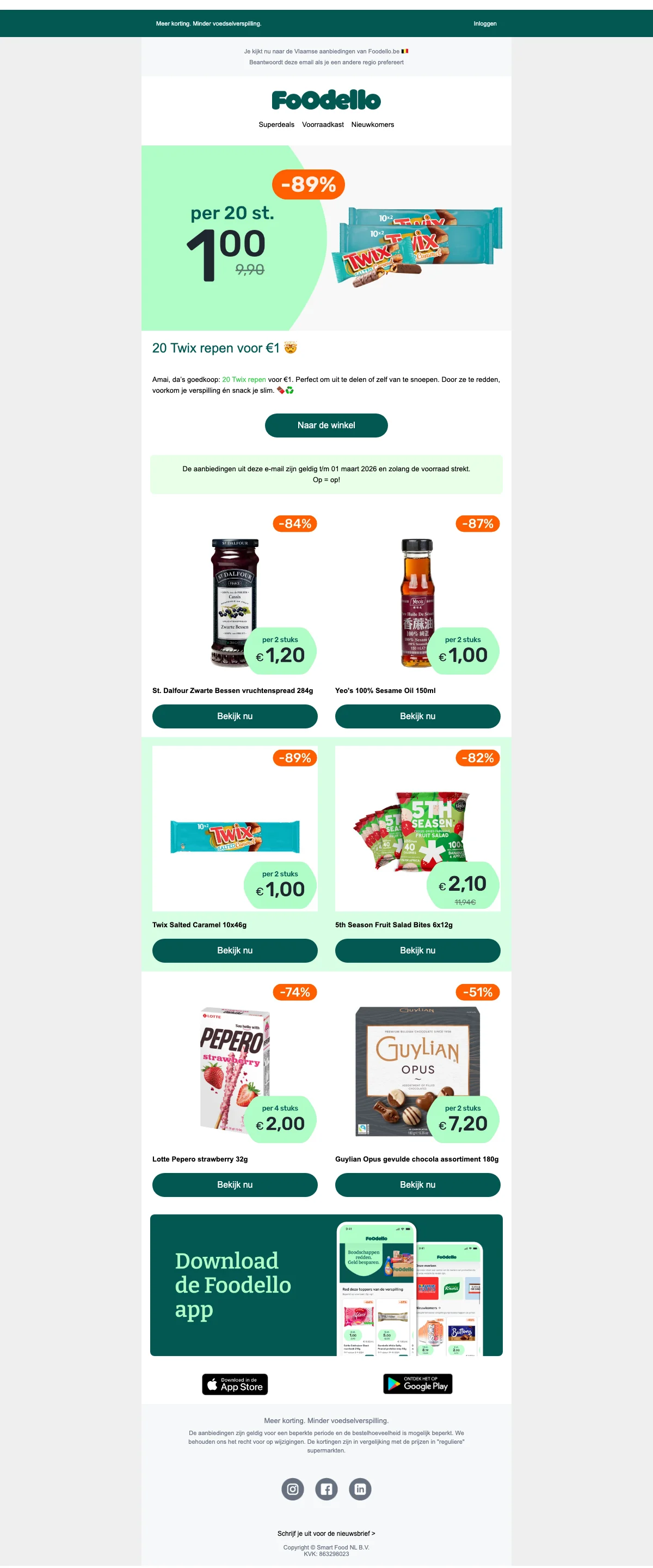 Foodello superdeals 20 Twix 20 repen voor €1 — reddingsactie