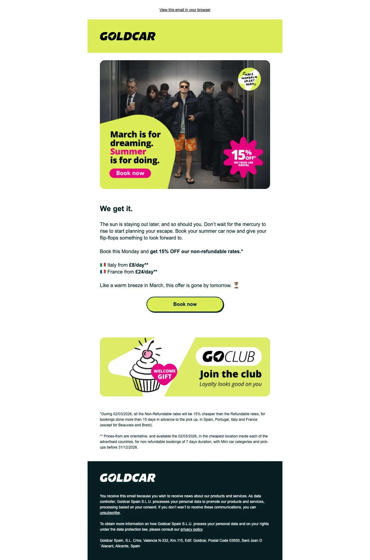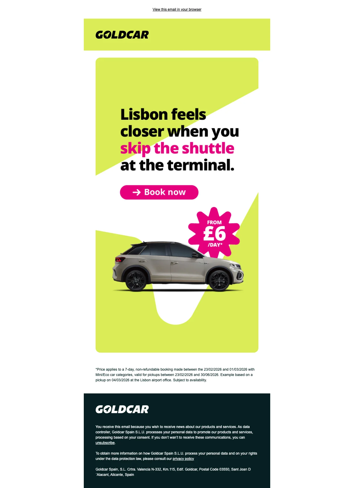 Goldcar actie: schrijf je in voor de nieuwsbrief en ontvang kortingen en aanbiedingen
