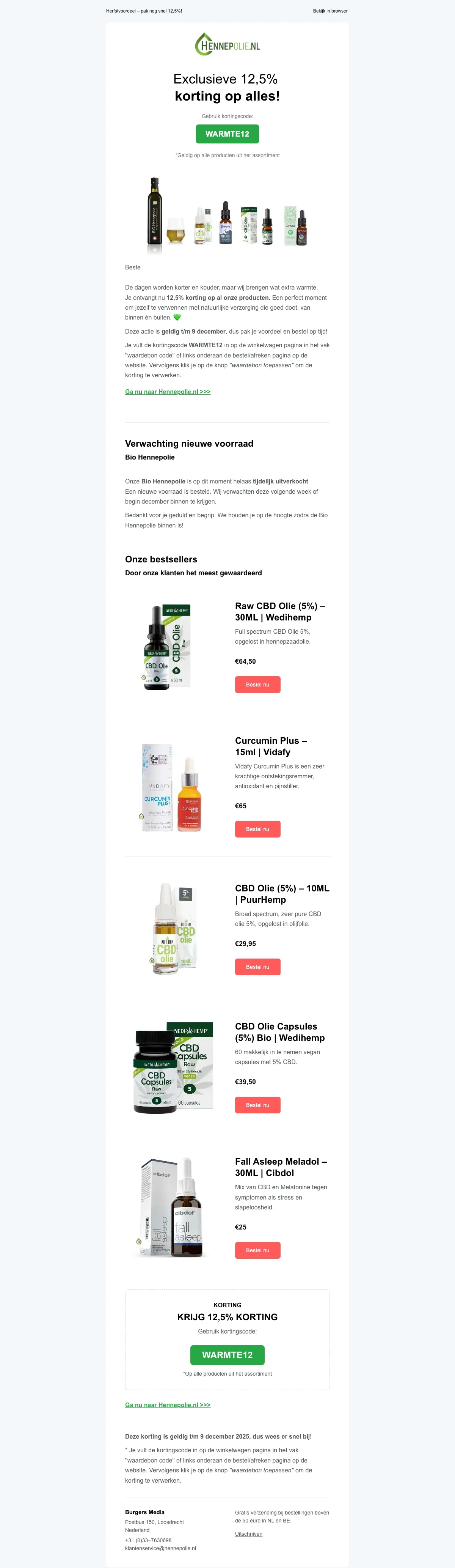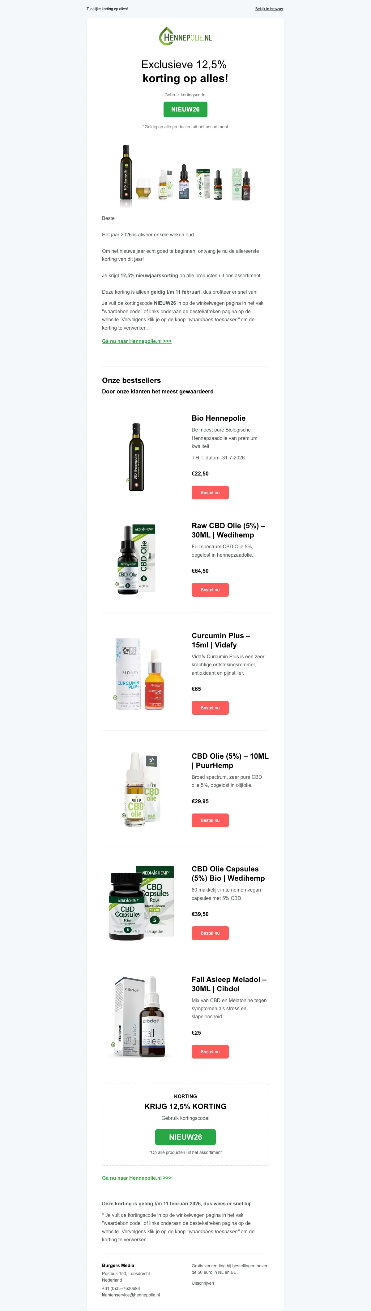 Hennepolie kortingscode: 12,5% korting op alles