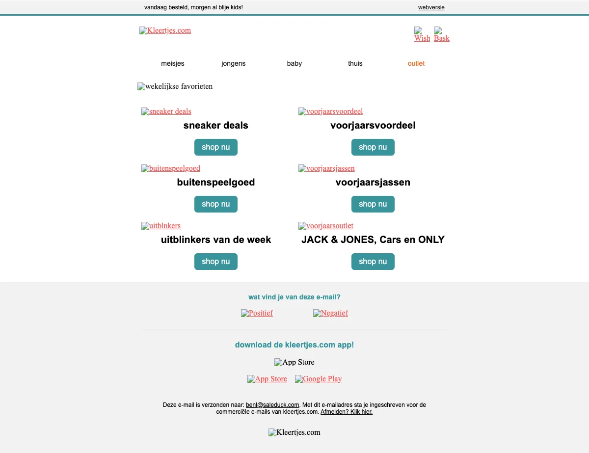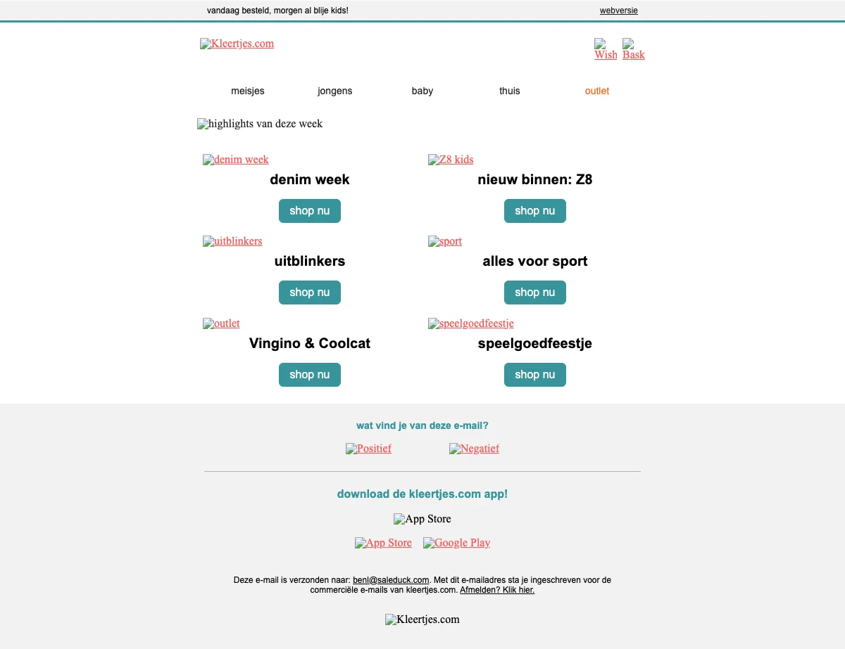 Tot wel 70% korting op kinderkleding in de outlet van Kleertjes.com