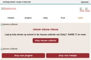 Wanneer u zich aanmeldt voor de nieuwsbrief van de webwinkel Kleertjes.com ontvangt u meteen een directe korting van 10 euro op uw volgende bestelling. Twijfel dus niet langer en meldt u nu aan voor de nieuwsbrief van de webwinkel Kleertjes.com.