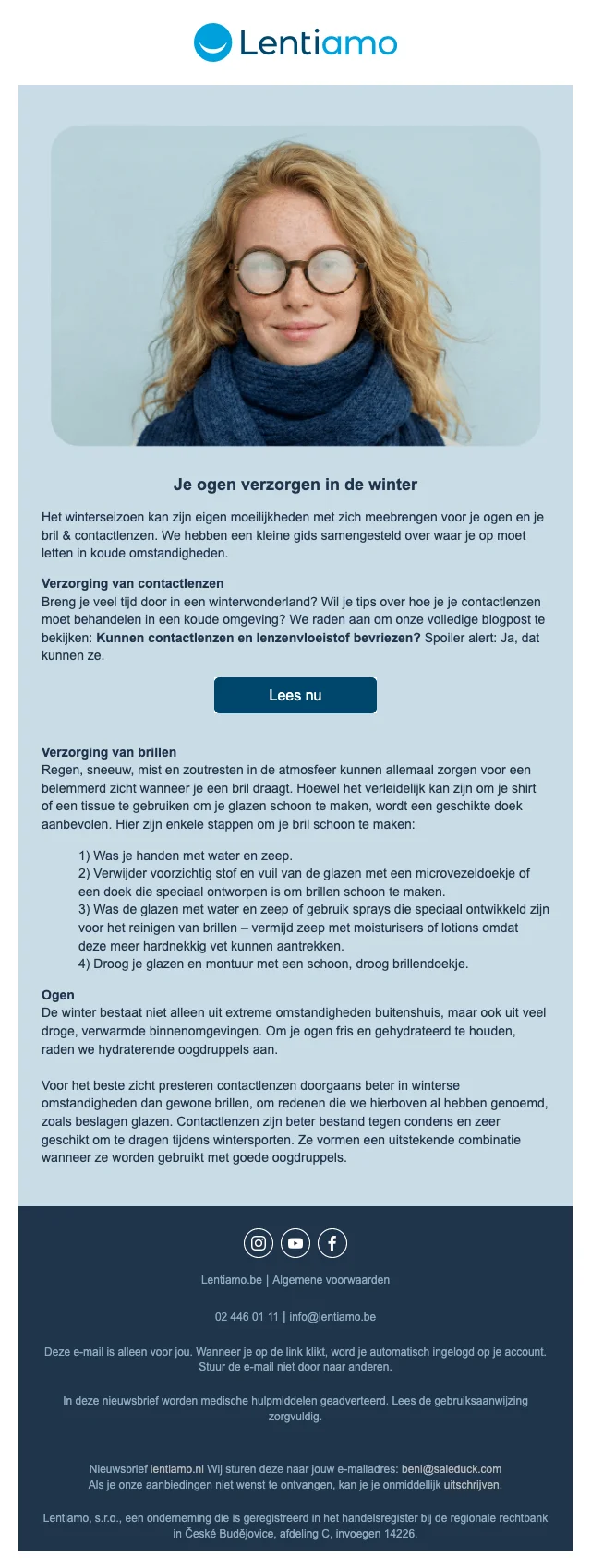 Lentiamo, tegenwoordig hebben best veel mensen gehoord van dit bedrijf, dit bedrijf is dan ook zeker niet nieuw op de markt en levert al een tijdje producten in Europa. Mocht u het bedrijf niet kennen, het bedrijf is gespecialiseerd in oog producten, wat wij hiermee bedoelen? Wij bedoelen hiermee dat het bedrijf artikelen verkoopt als lenzen, brillen, lenzenvloeistof, zonnebrillen maar ook accessoires. Alles wat u nodig heeft rondom uw ogen om optimaal te kunnen zien kunt u halen bij dit bedrijf. Door het uitgebreide assortiment is er voor goed als iedereen het juiste setje lenzen of de juiste bril. Lentiamo helpt tegen vervuiling door de niet verkochte modellen van andere winkels over te nemen en deze aan te bieden op de website. Zo kunt u voor een goedkope prijs een mooi modelletje halen en worden deze modellen niet weggegooid of vernietigd. Het bedrijf is opgericht in Tsjechië door een groepje gemotiveerde jongeren die zich irriteerde aan het feit dat ze altijd ver moesten reizen om deze producten te kunnen halen, in Tsjechië is oog zorg minder bekend als hier in Nederland. De groep jongeren wilden een platform creëren waar mensen de producten konden bestellen die ze nodig hadden, deze producten worden dan aan huis geleverd waardoor de klant niet naar een andere stad hoeft of naar het dichtstbijzijnde dorp.