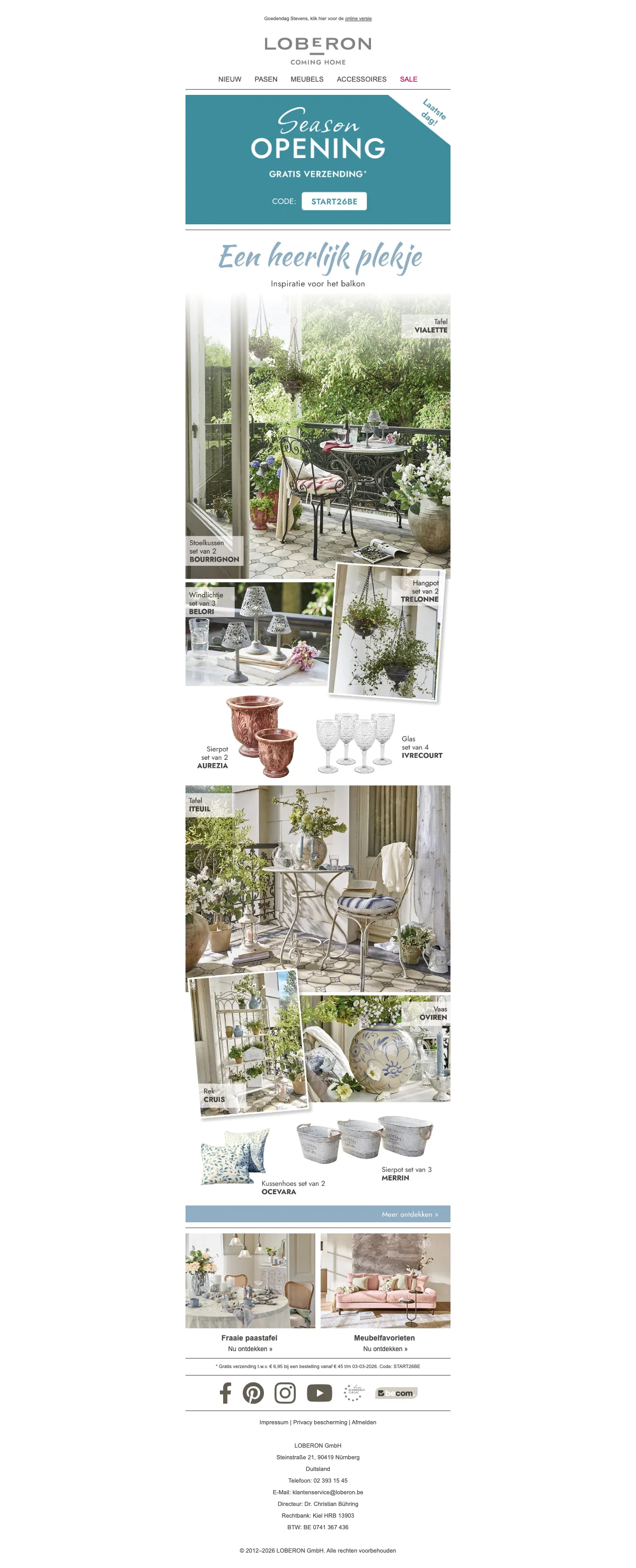 Schrijf je in voor de nieuwsbrief en ontvang een Loberon kortingscode van €15