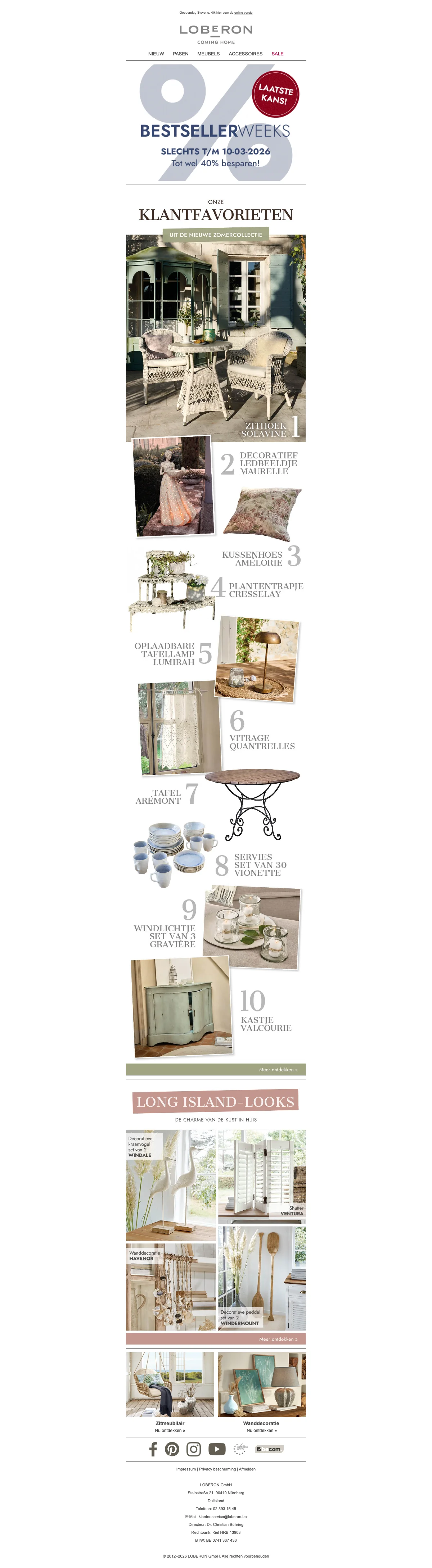 Loberon bestsellers 40% korting alleen vandaag