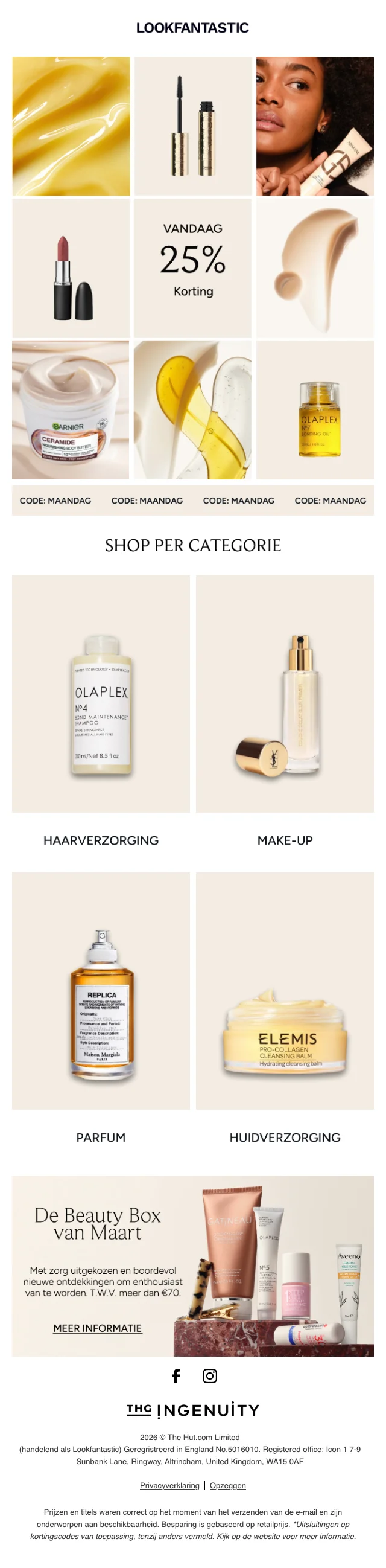 | SHOPNEW | LookFantastic welkomstaanbieding 25% korting op eerste bestelling |
