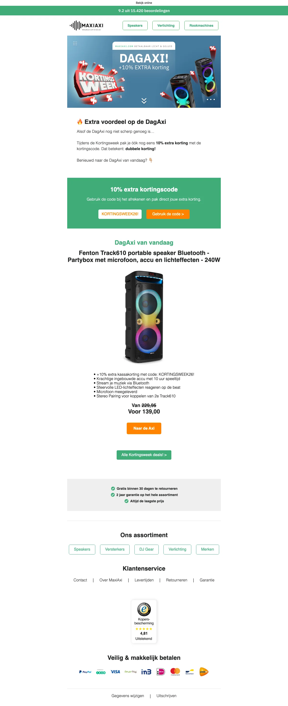 DagAxi 10% extra kortingscode op speakers tijdens kortinsweek