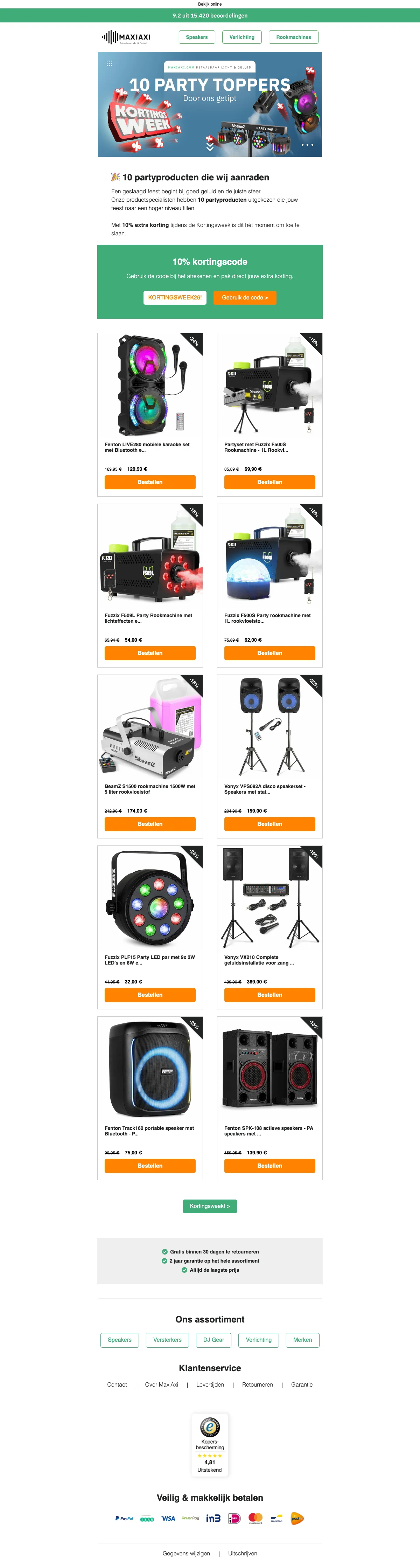 MaxiAxi aantrekkelijke kortingen op topkwaliteit speakers, verlichting en meer