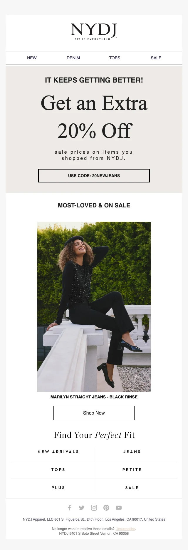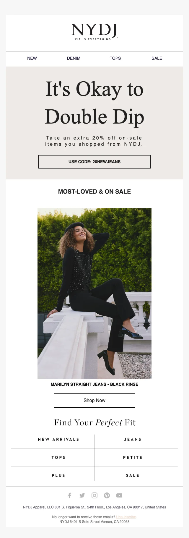 NYDJ 20% korting op on-sale favorieten — extra korting met code