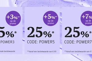 Ontvang 25% korting plus nog eens 5% extra op geselecteerde promotieproducten zonder minimale bestelwaarde. De actie geldt niet voor sale-artikelen, cadeaukaarten en merken als Chanel, Dior, Rituals en Sol de Janeiro en is niet te combineren met andere acties.