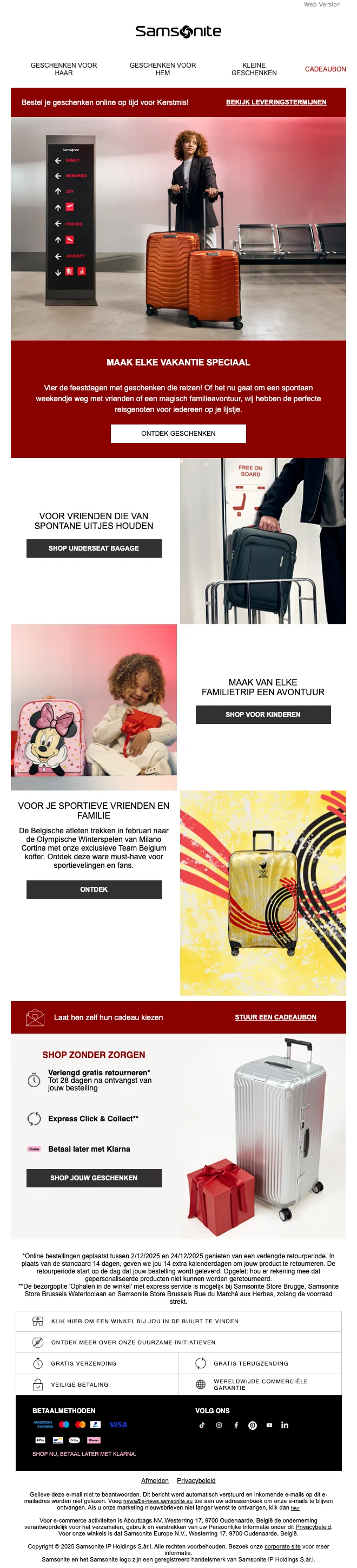 Wat staat er in de laatste nieuwsbrief van Samsonite ?