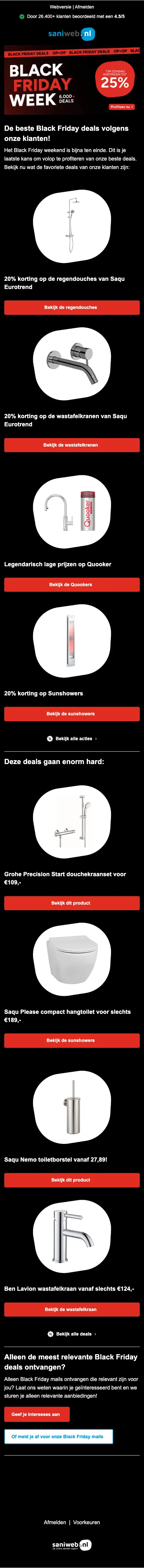 Saniweb Black Friday 10% extra korting op regendouches
