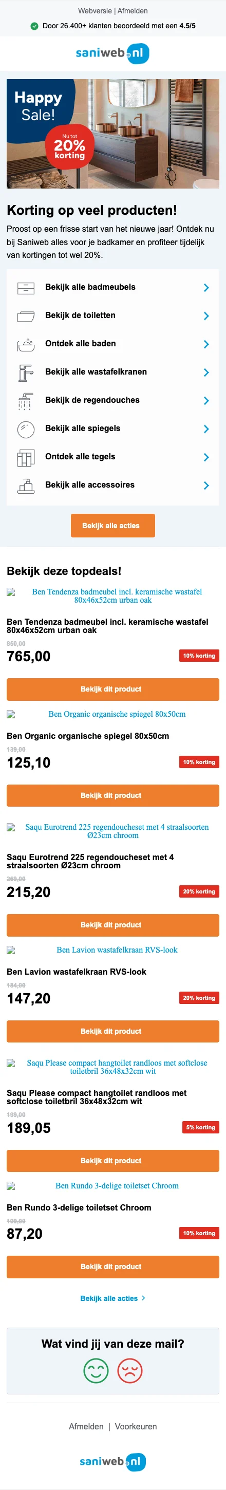 Op alle acties geniet je nu van saniweb korting van 5%