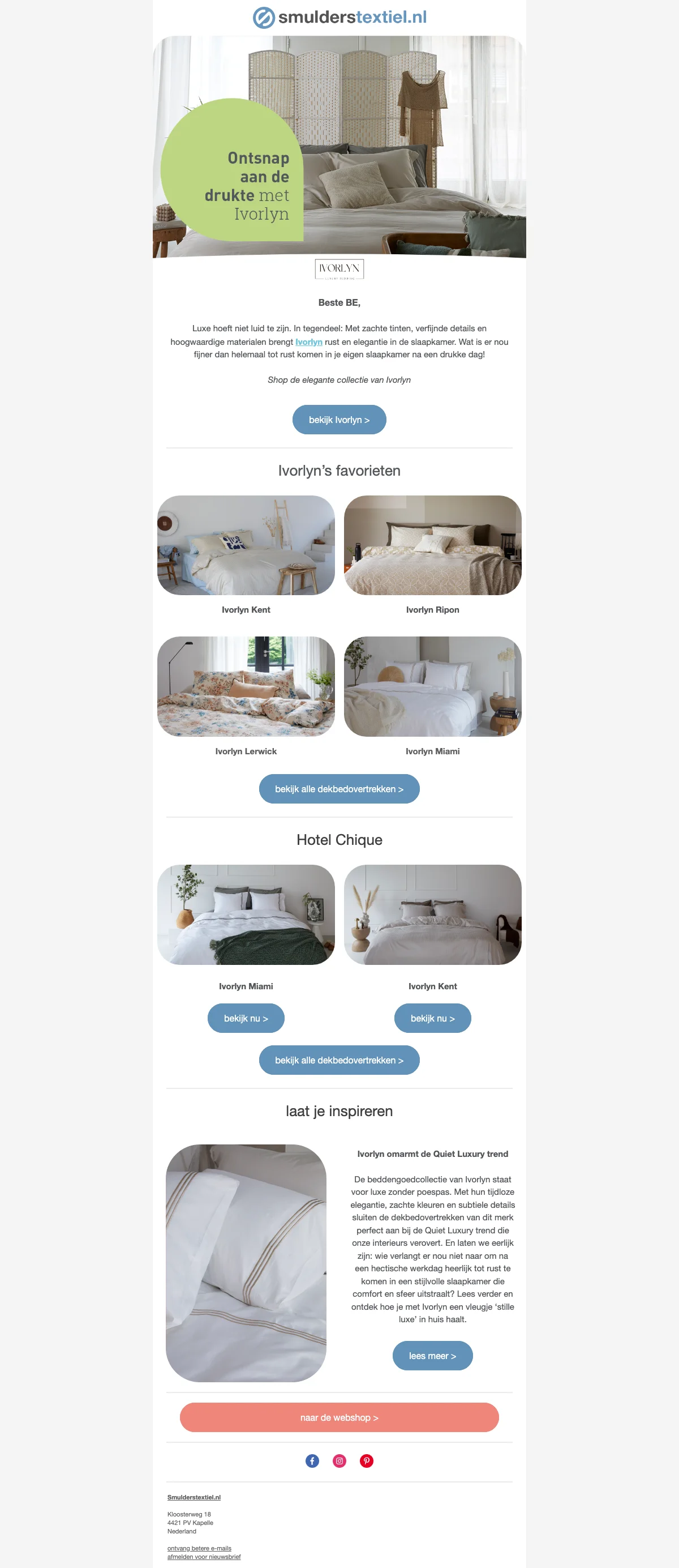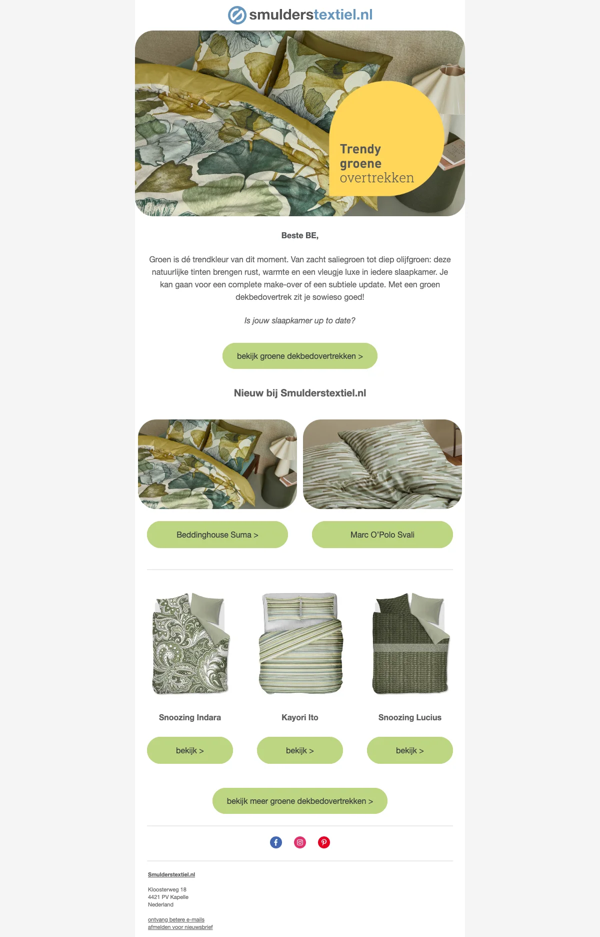 Wij controleren alle nieuwsbrieven van Smulderstextiel voor u om de beste aanbiedingen te vinden. Bekijk hier de meest recente nieuwsbrieven.