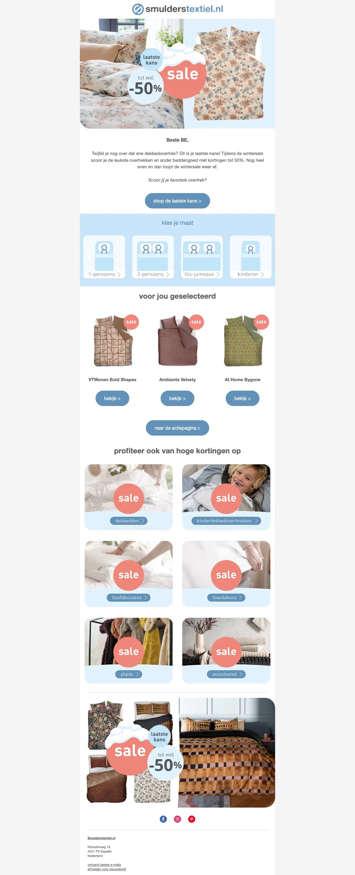 Smulderstextiel laatste kans sale 50% korting op beddengoed