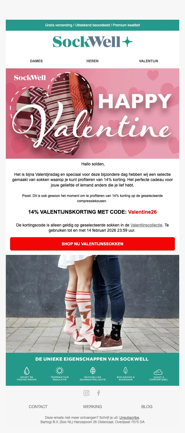 Sockwell valentijnsaanbieding: 14% valentijnskorting op compressiesokken