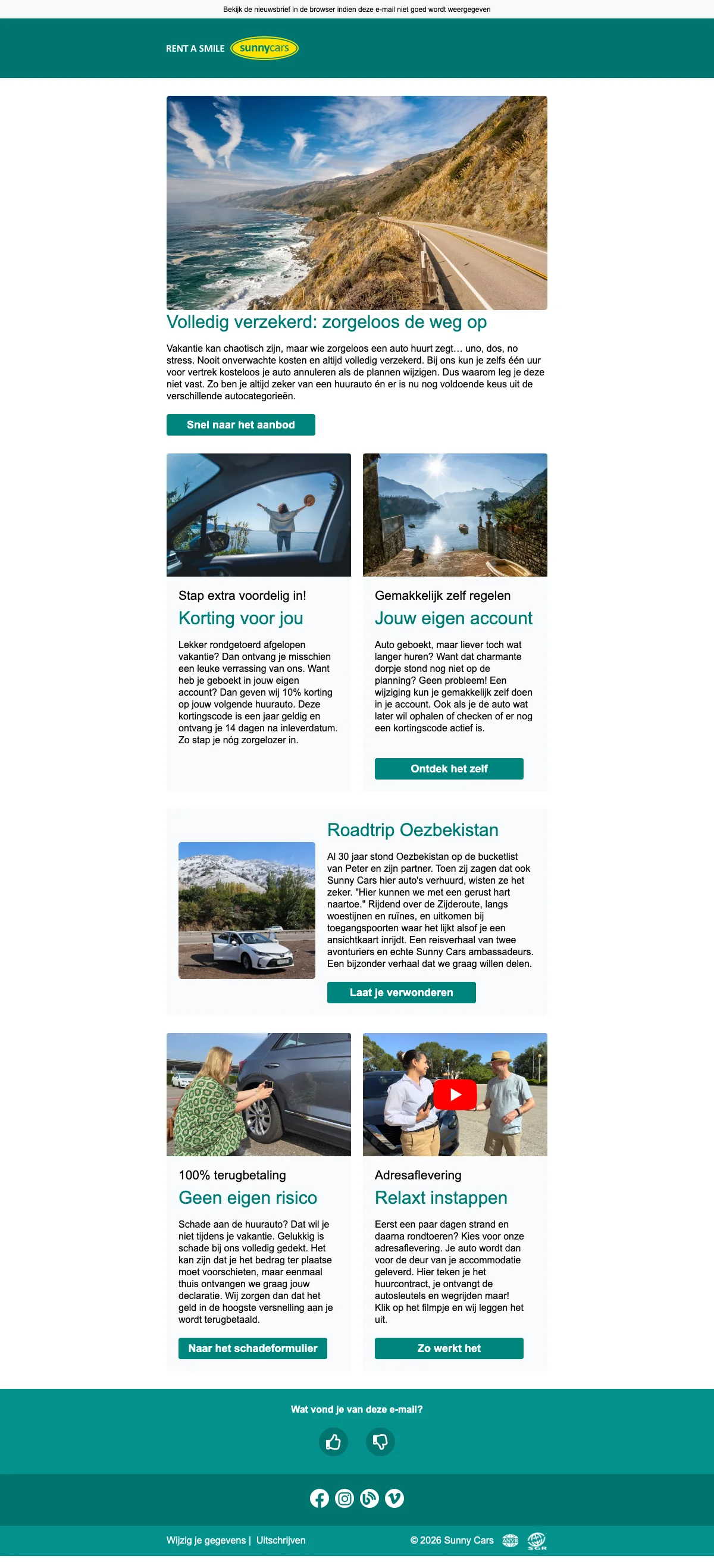 Wij controleren alle nieuwsbrieven van Sunny Cars voor u om de beste aanbiedingen te vinden. Bekijk hier de meest recente nieuwsbrieven.