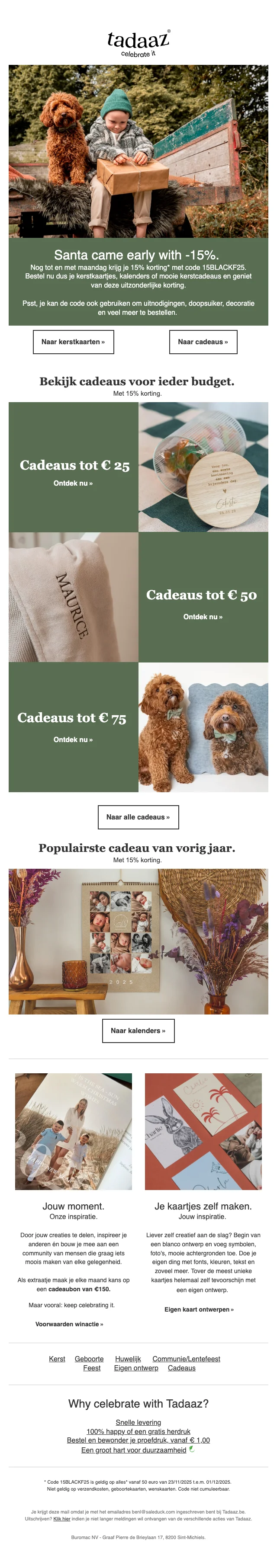Erg populair bij Tadaaz zijn de communiekaartjes. Deze kaartjes, met een foto van de communicant, zijn natuurlijk nog steeds een populaire traditie voor ieder lentefeest. Tadaaz biedt deze kaarten aan een erg lage prijs, dankzij de kortingscode die ze altijd bieden voor dit evenement.