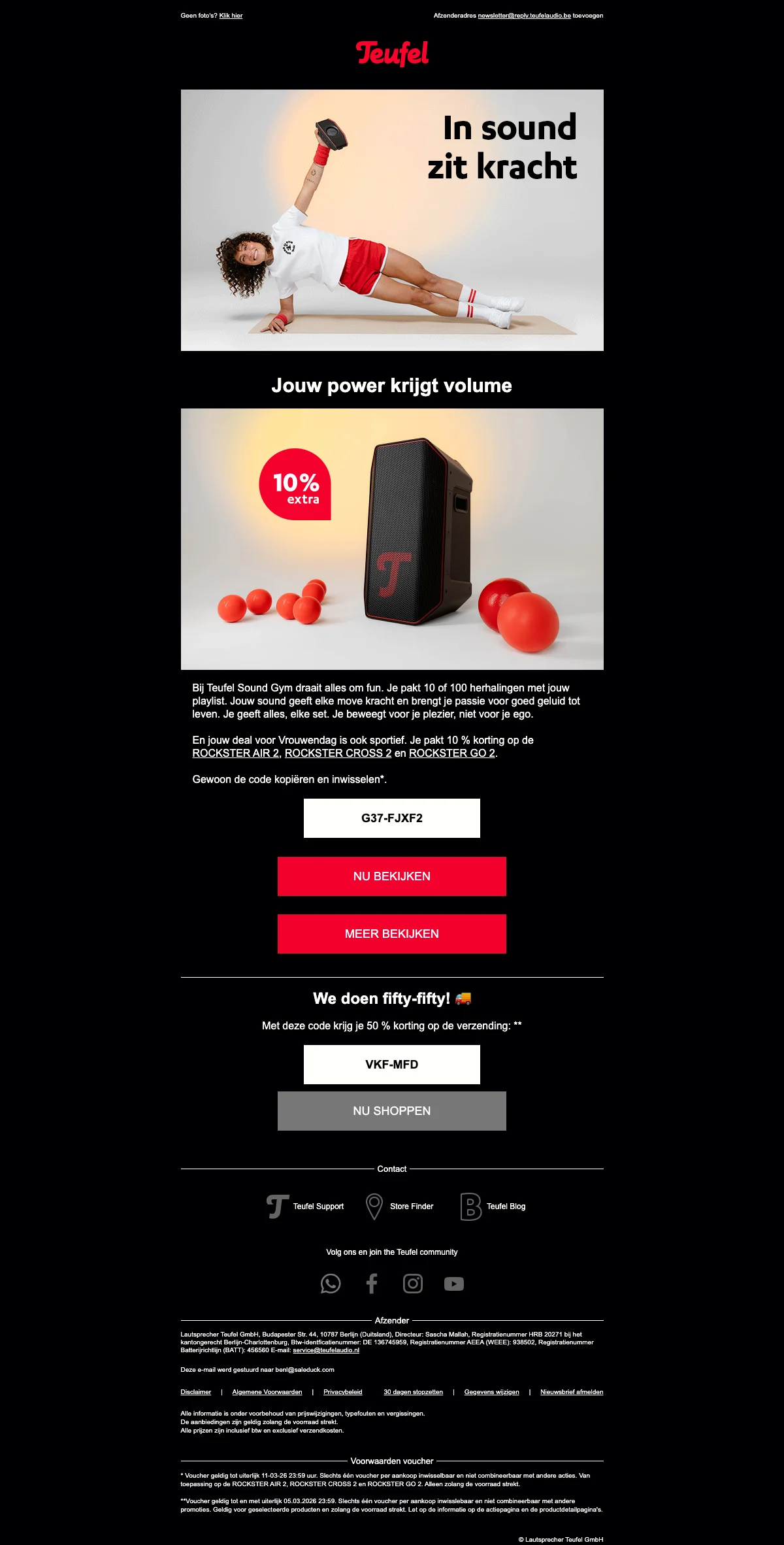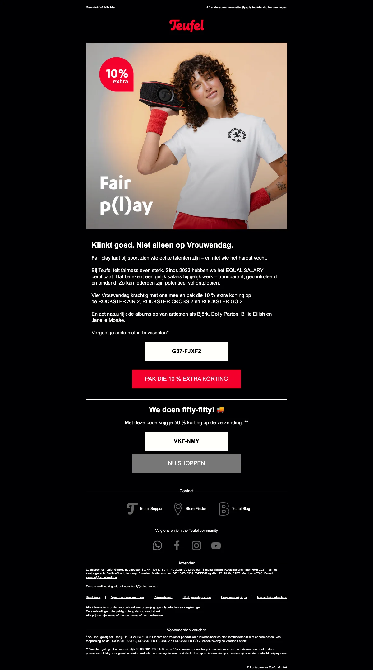 De Teufel kortingscode is G37-FJXF2. Vul onze code voor Teufel 2026 in op de afrekenpagina en ontvang exclusieve kortingen. Teufel Vrouwendag 10% extra korting op Rockster speakers.
