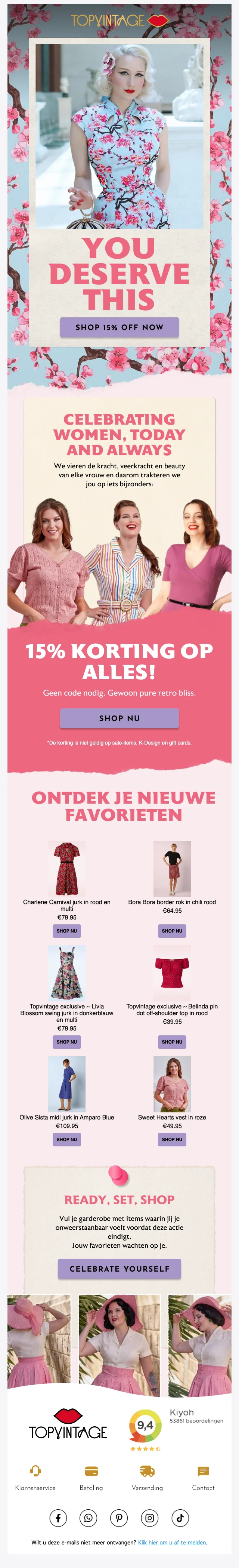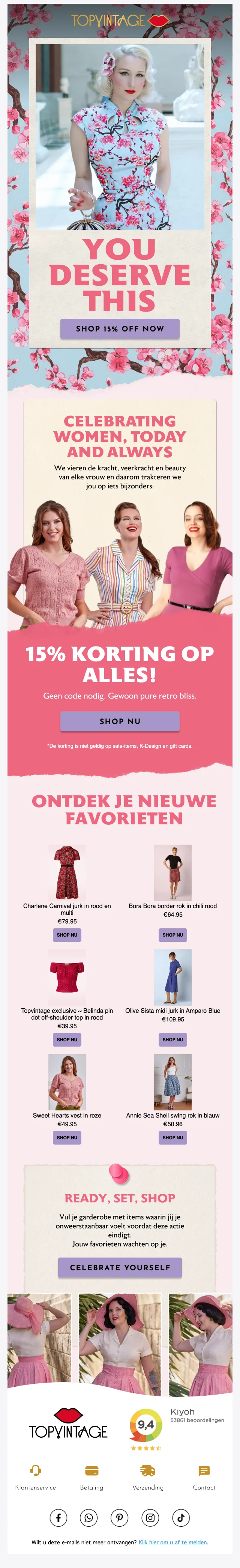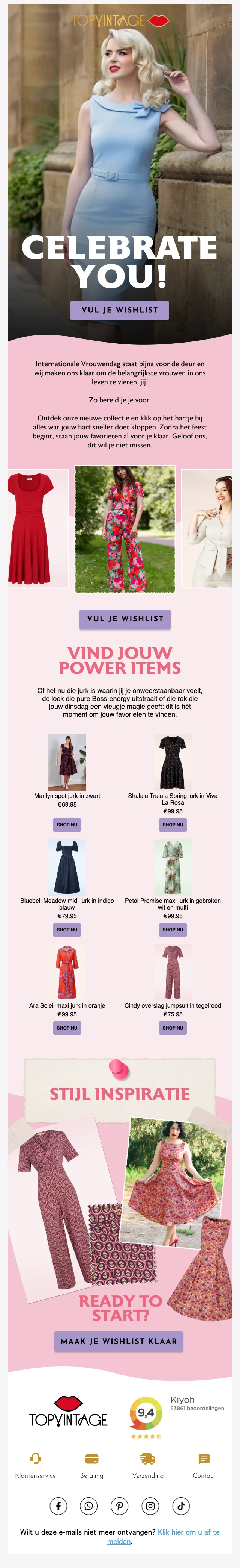 U krijgt een gratis levering bij een bestelling vanaf €99.- bij de retro en jaren '50 online shop. De levering is ten alle tijden verzekerd.