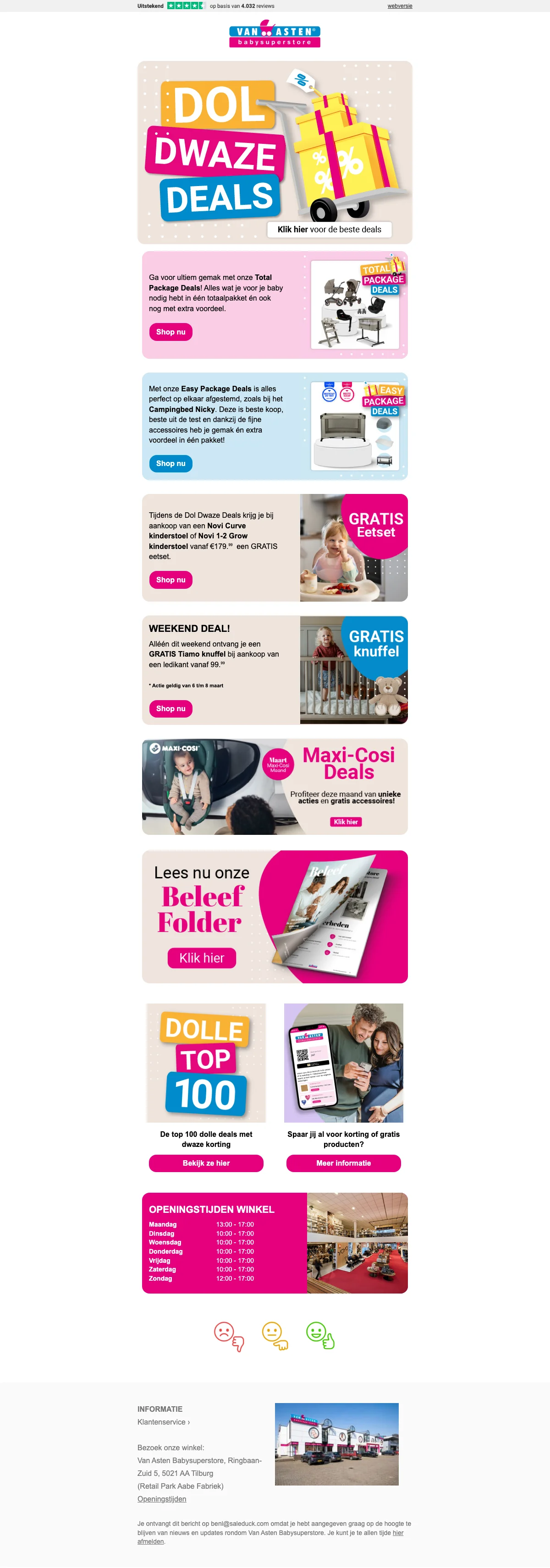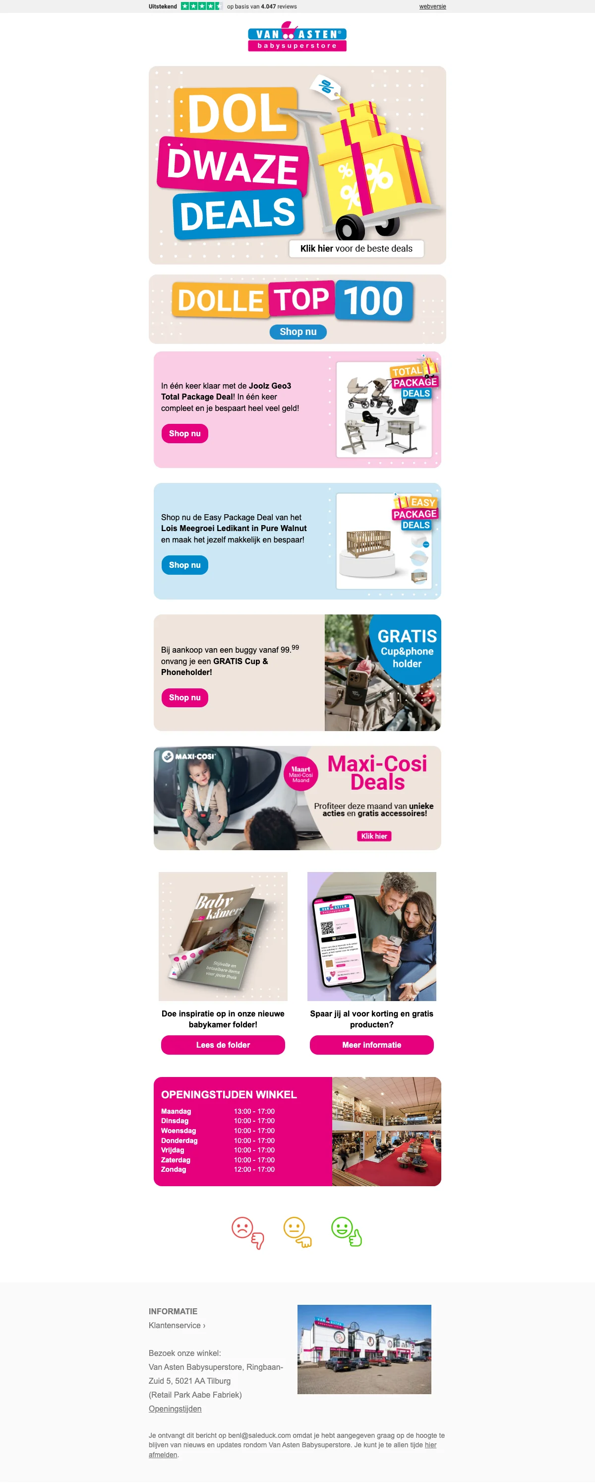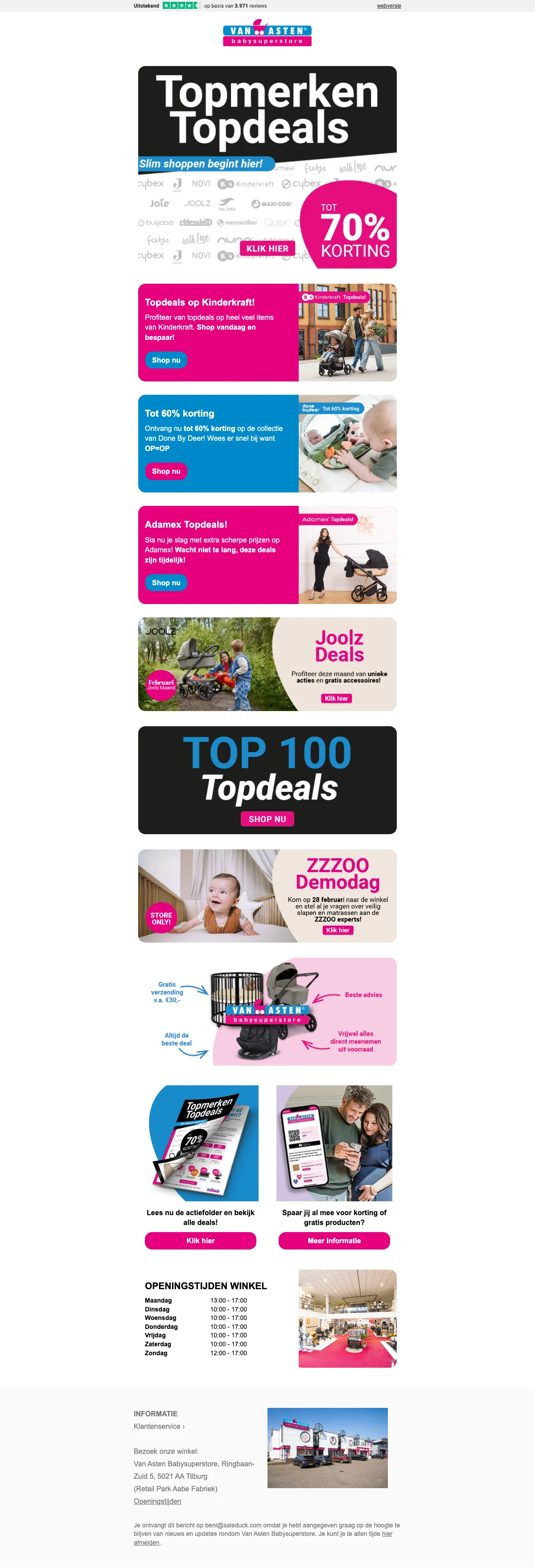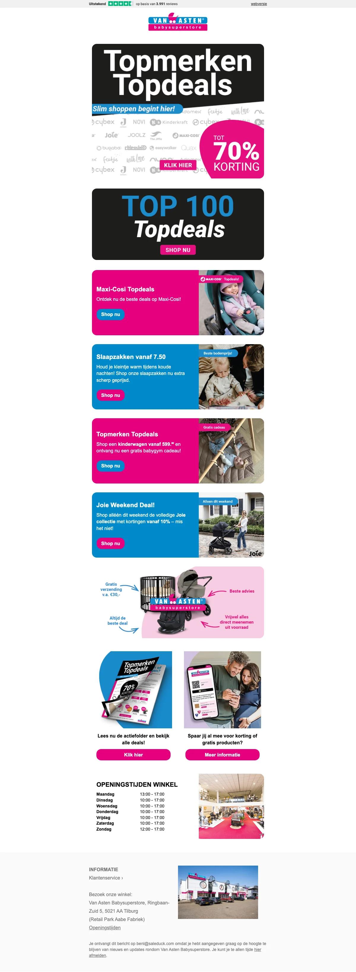 Saleduck is een onafhankelijke, door advertenties ondersteunde service voor het vergelijken van coupons. De aanbiedingen die op deze site verschijnen zijn van bedrijven waarvan Saleduck een vergoeding ontvangt. Deze vergoeding kan van invloed zijn op hoe en waar kortingsbonnen of producten op deze site verschijnen, inclusief bijvoorbeeld de volgorde waarin ze in aanbiedingscategorieën kunnen verschijnen. Saleduck heeft directe contracten met de adverteerders die wij promoten. We publiceren alleen coupons die we rechtstreeks van de adverteerder krijgen of als de adverteerder deze zelf promoot. We publiceren geen codes van andere websites opnieuw. Saleduck verifieert de codes handmatig voordat ze worden gepubliceerd.