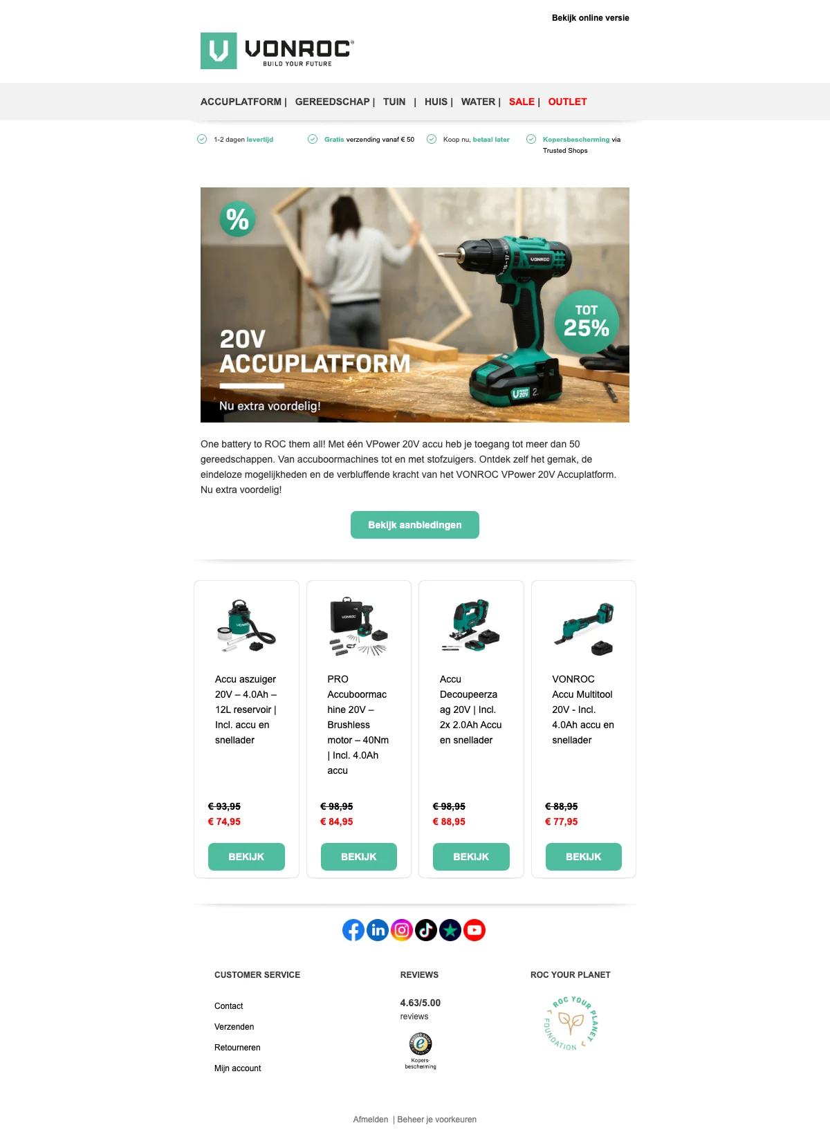 Vonroc kortingscode €5 korting voor nieuwe nieuwsbriefinschrijvingen