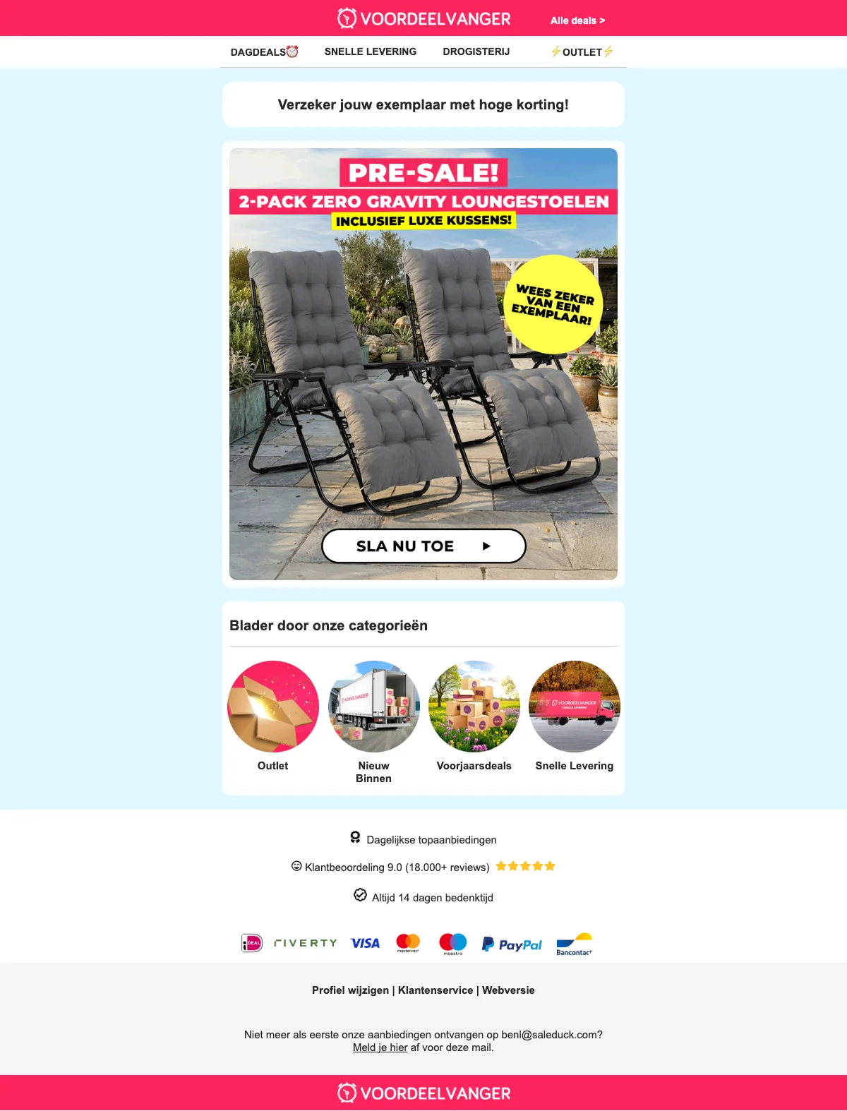 Saleduck is een onafhankelijke, door advertenties ondersteunde service voor het vergelijken van coupons. De aanbiedingen die op deze site verschijnen zijn van bedrijven waarvan Saleduck een vergoeding ontvangt. Deze vergoeding kan van invloed zijn op hoe en waar kortingsbonnen of producten op deze site verschijnen, inclusief bijvoorbeeld de volgorde waarin ze in aanbiedingscategorieën kunnen verschijnen. Saleduck heeft directe contracten met de adverteerders die wij promoten. We publiceren alleen coupons die we rechtstreeks van de adverteerder krijgen of als de adverteerder deze zelf promoot. We publiceren geen codes van andere websites opnieuw. Saleduck verifieert de codes handmatig voordat ze worden gepubliceerd.