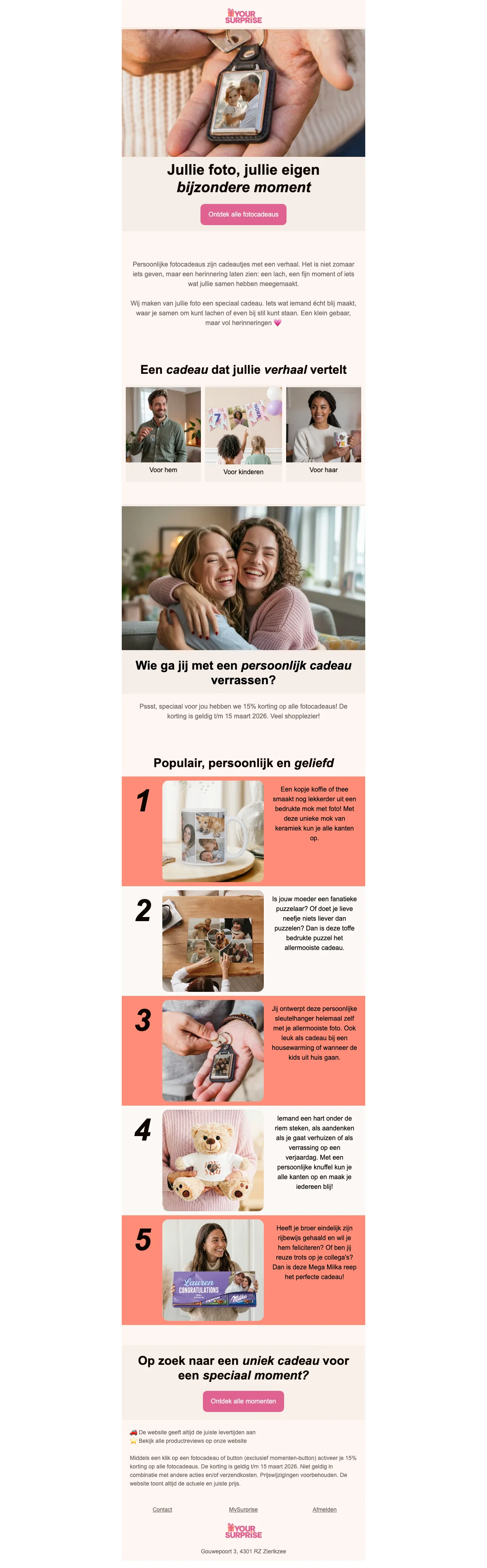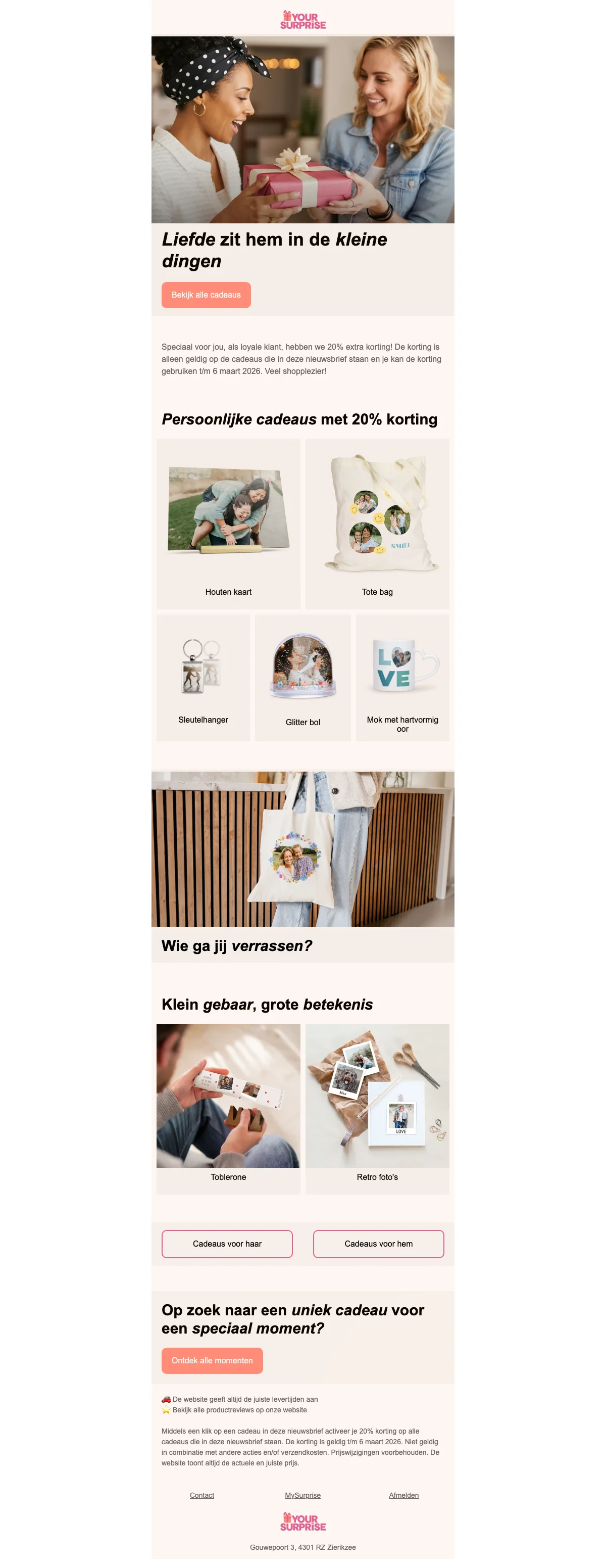 MySurprise cadeau nieuwsbrief 20% korting op persoonlijke cadeaus